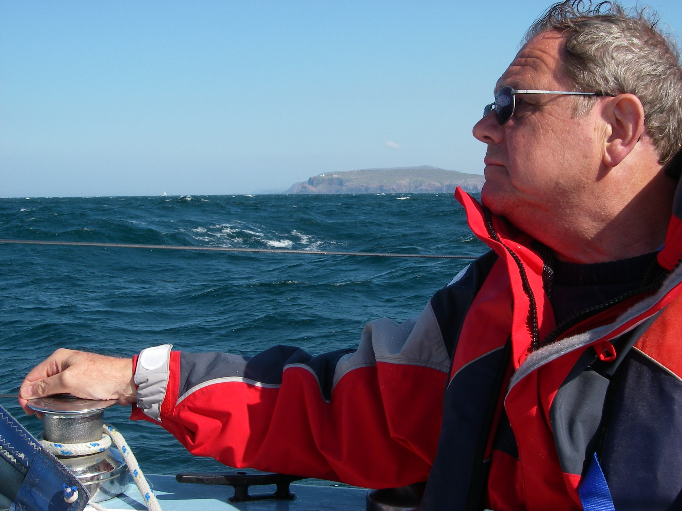 We had to drop our plan to visit the Scillies en route; as soon as the weather settled, Tony Georgia and I (Judy had to get back) sailed straight for Dunmore East at the entrance to the river that runs up to Waterford. The weather was perfect, with a beam or close reach most of the way, and bright sun as we passed the Lizard, crossed Mounts Bay and rounded Lands End and Cape Cornwall for the passage North.