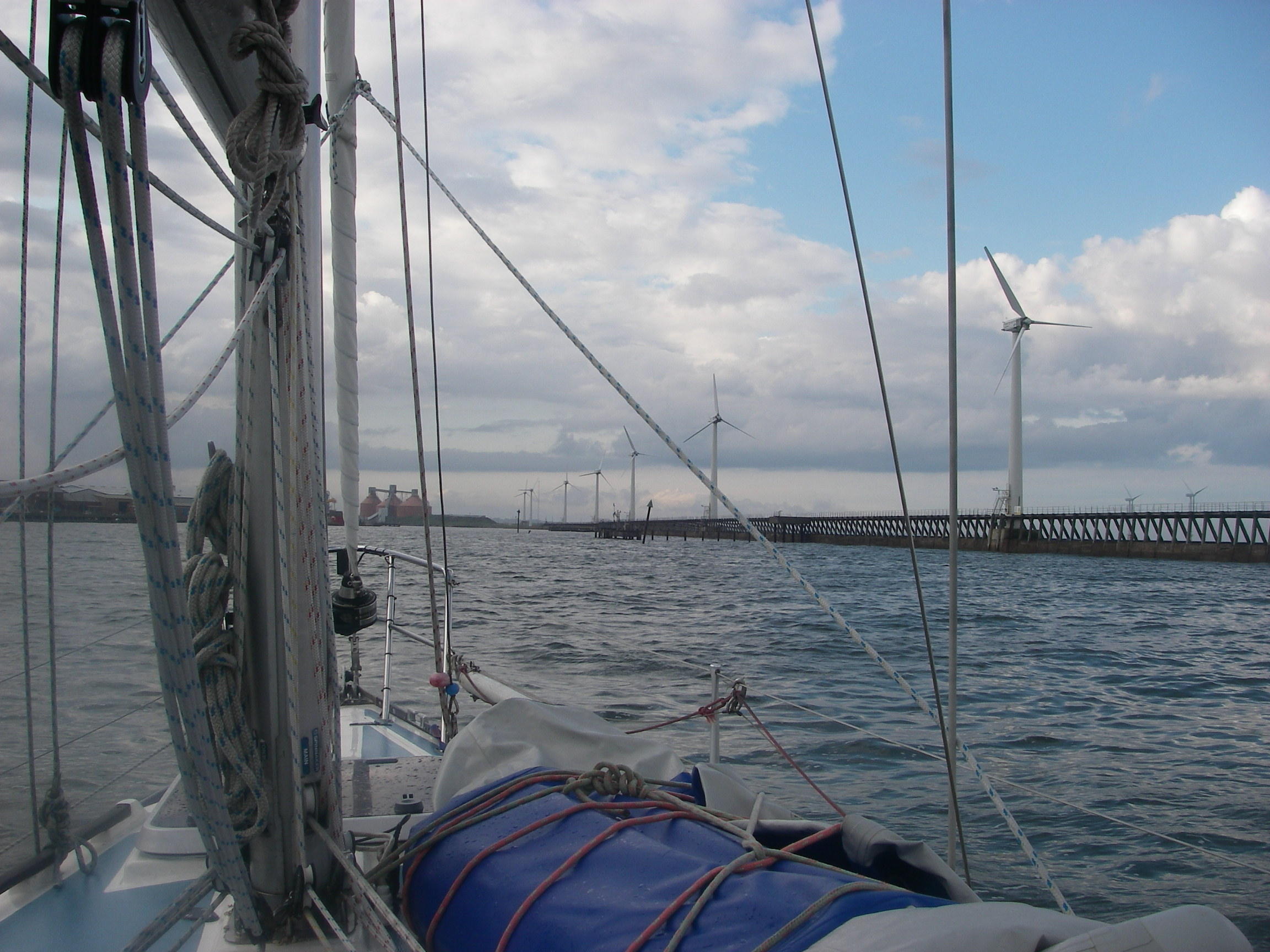 I returned a fortnight later with Tony, and we set off down the Humber heading for Lowestoft – or rather Wells Next the Sea, where I had booked a rare deep water berth alongside a barge in the shallow harbour. When I rang him a few days before, the harbourmaster offered to come out to meet us at the bar. But the wind turned into the North and went up to a 5 or 6 as we approached, which makes the entrance to Wells a risky for a newcomer, so we headed straight for Lowestoft and into the yacht club basin, where we dined at the club.