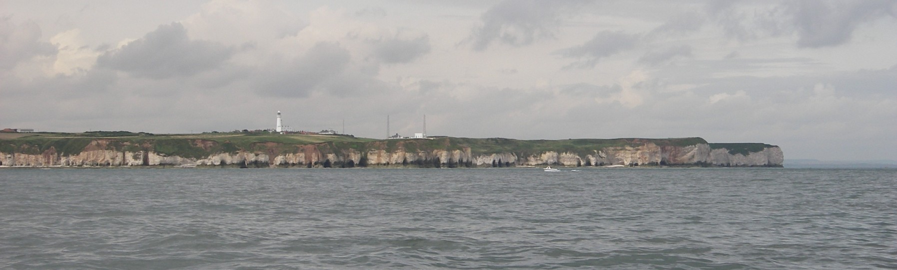 We sailed past Scarborough and Flamborough Head in clear weather with a pleasant breeze, arriving at the Humber Estuary where we checked in with the vessel traffic scheme ahead of our crossing to Grimsby. The engine chose that moment to overheat, probably because we were going over a bank in a strong tide, with sand churning to the surface of the water and blocking the water pump.