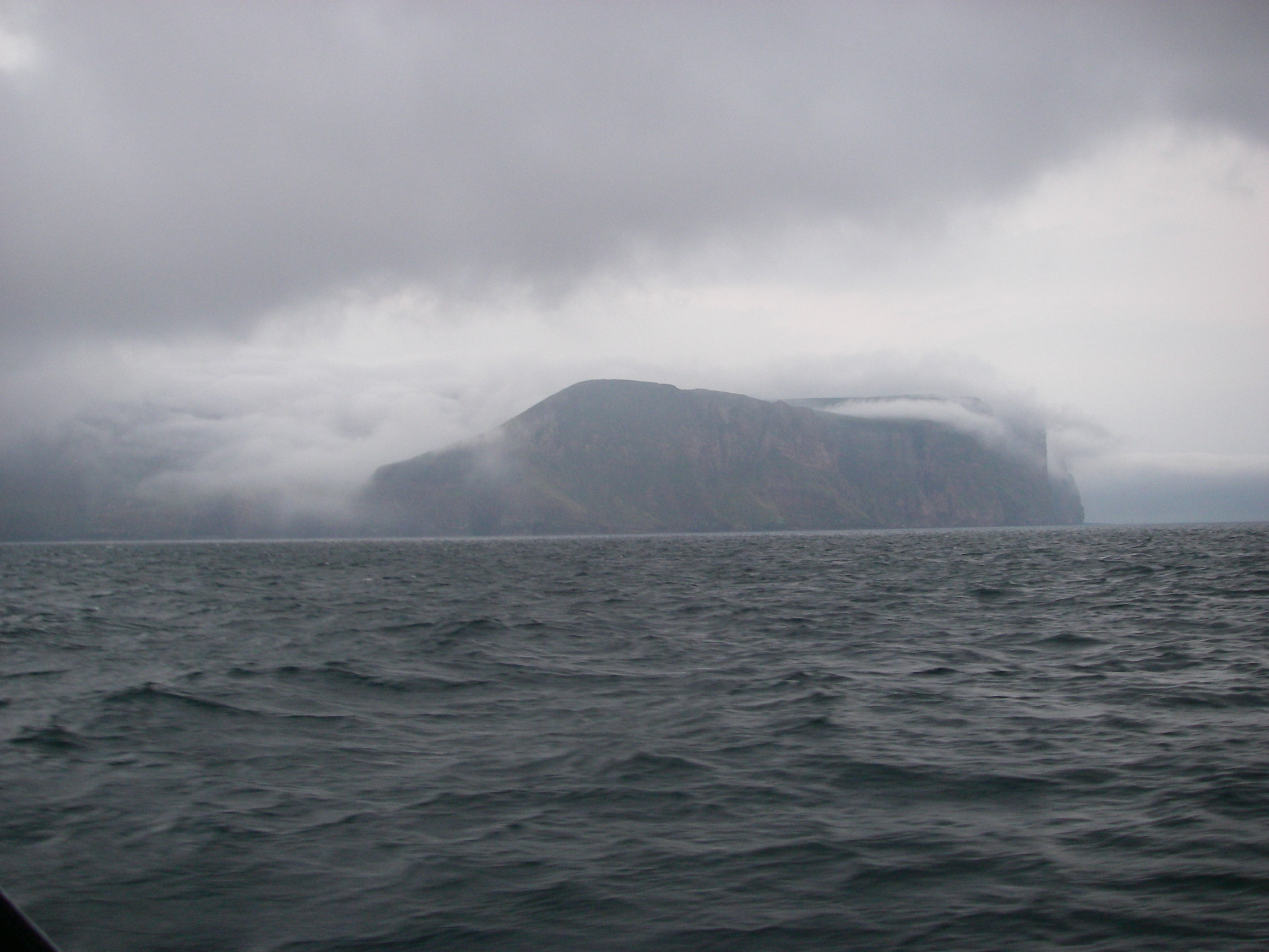 When the fog suddenly cleared, we found a bright day with a gentle  westerly breeze, with the seas still low. We motored back out of Stromness the way we had come, and then up the west coast of the Orkney Mainland in a splendid and increasingly fast sail, heading for the island of Westray.