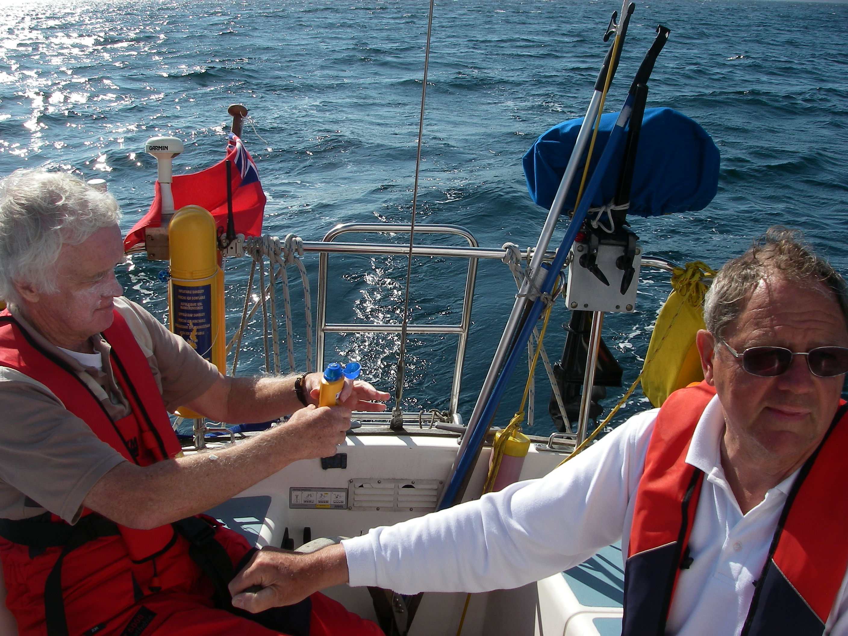 Approaching Edinburgh in a flat calm – Tony and Peter Finch