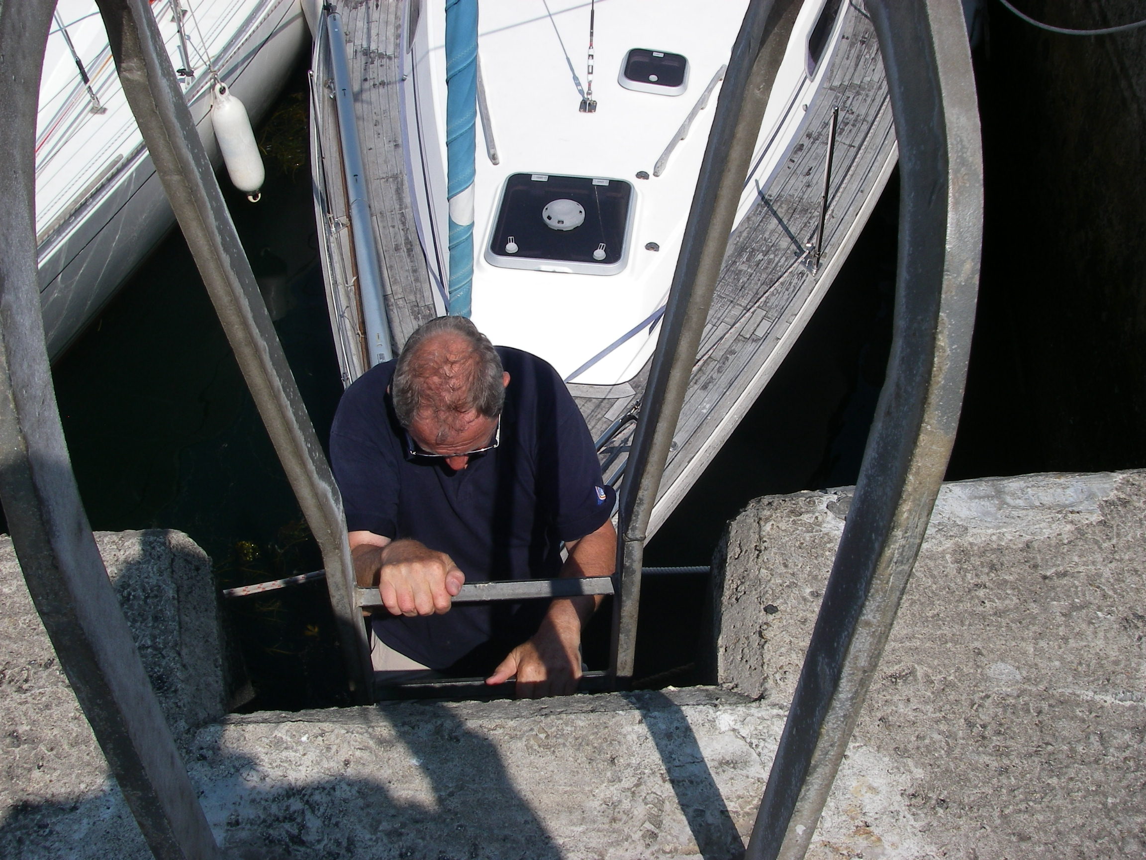 Slipped in behind the newish concrete breakwater at Tory Island, rafted against another yacht, bows to the quay. We could just reach the iron ladder from Paul, our neighbour’s, bow. He was a single-hander of a certain age in a 40 foot Westerly, and pretty skilled to get in there alone.