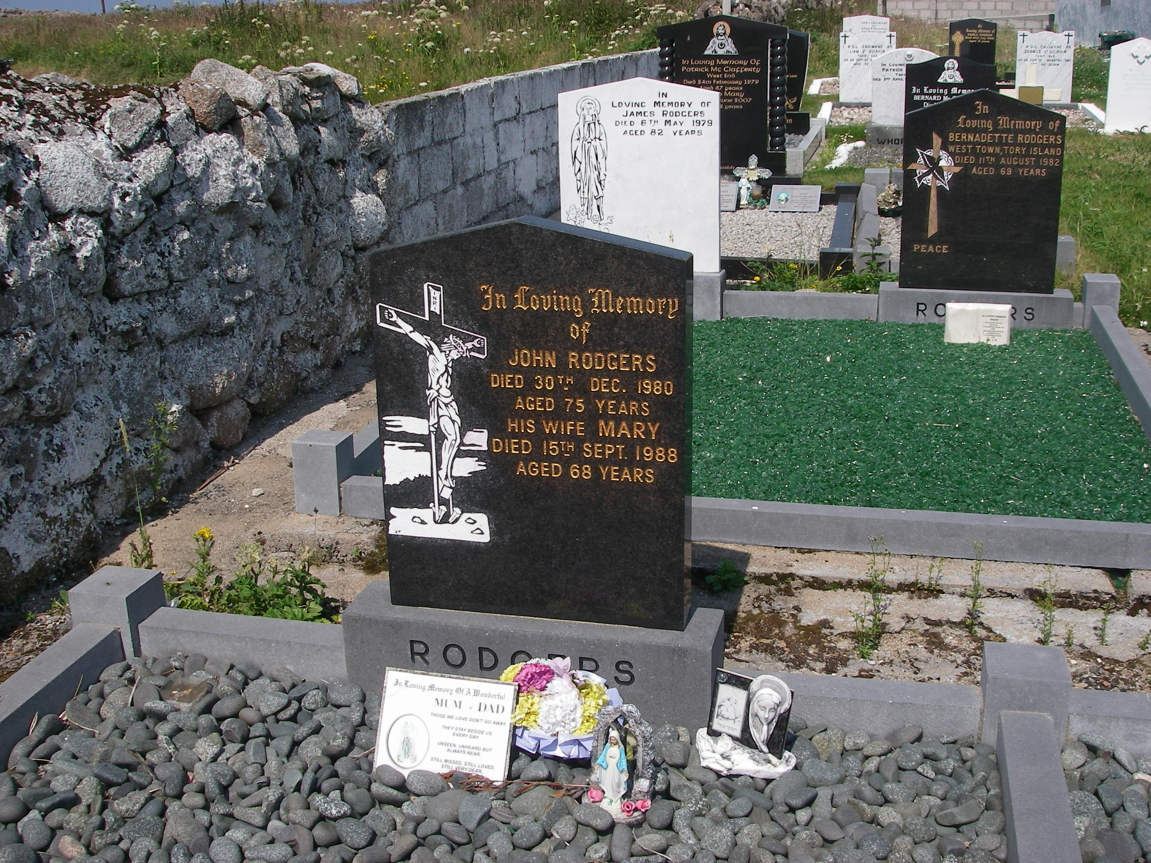 The pub landlord, checking with another customer as well,  said the name had been on Tory for many hundreds of years, and he thought it was Irish in origin. This tallies with an article I found that said that some Irish Rodgers came from England, but others were given it by government clerks because Rodgers was the nearest English sound to their Irish language names. Since Tory is still Irish speaking, that sounds the most likely explanation. In fact, in a tourist guidebook they called their language Gaelic rather than Irish and said it was  understandable by Gaelic speakers from Islay in Scotland, 70 miles away.