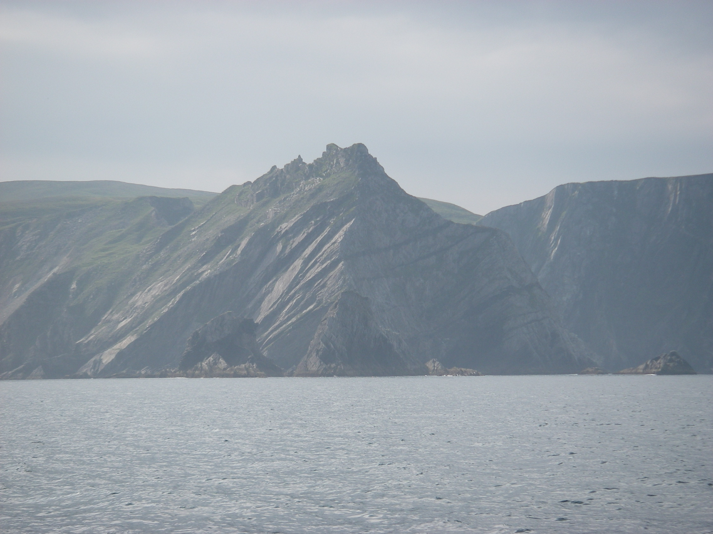 Rathlyn O’Byrne is an island and lighthouse just off a headland, and to get there in good weather you can go quite close to some spectacular cliffs.