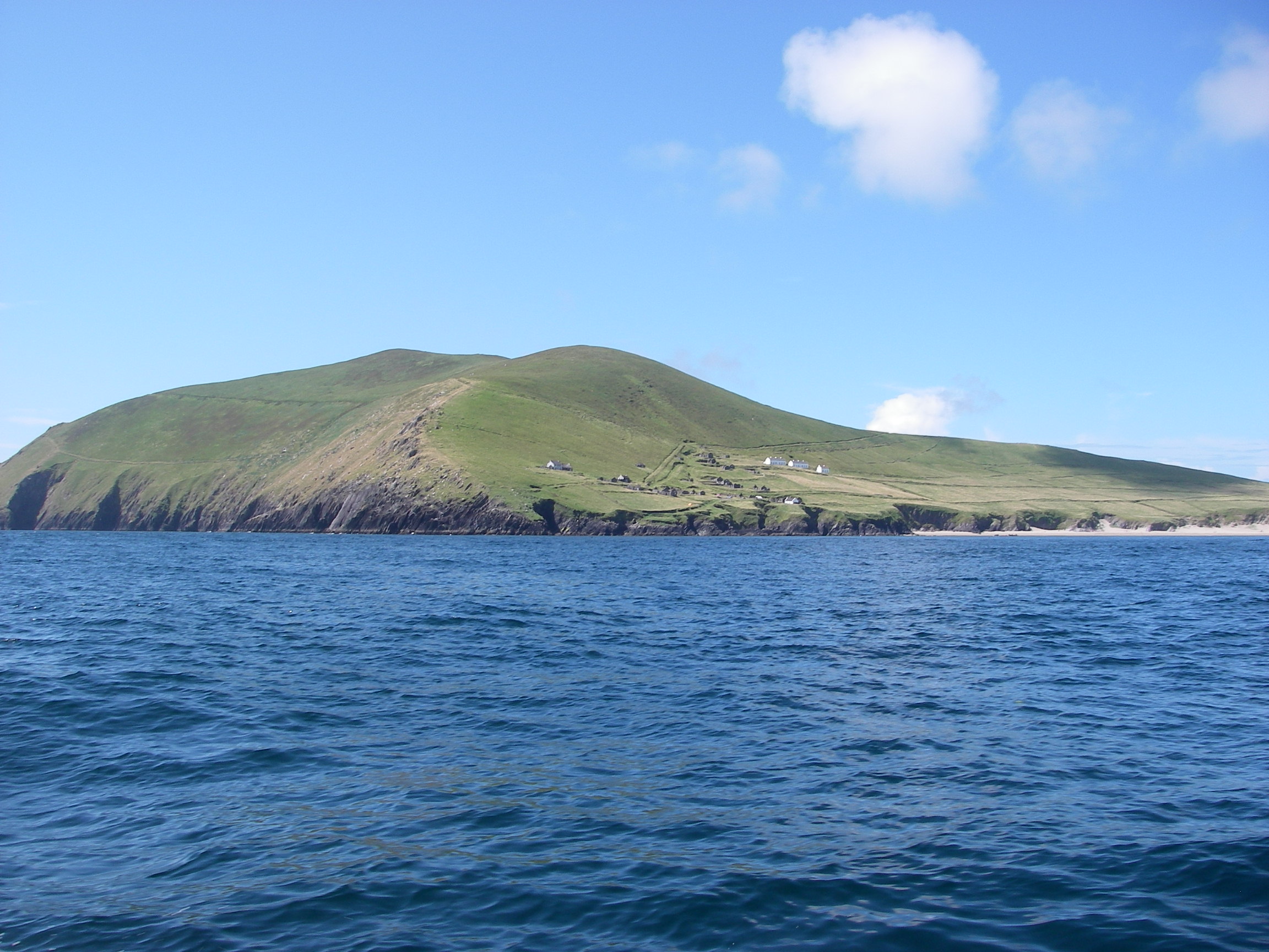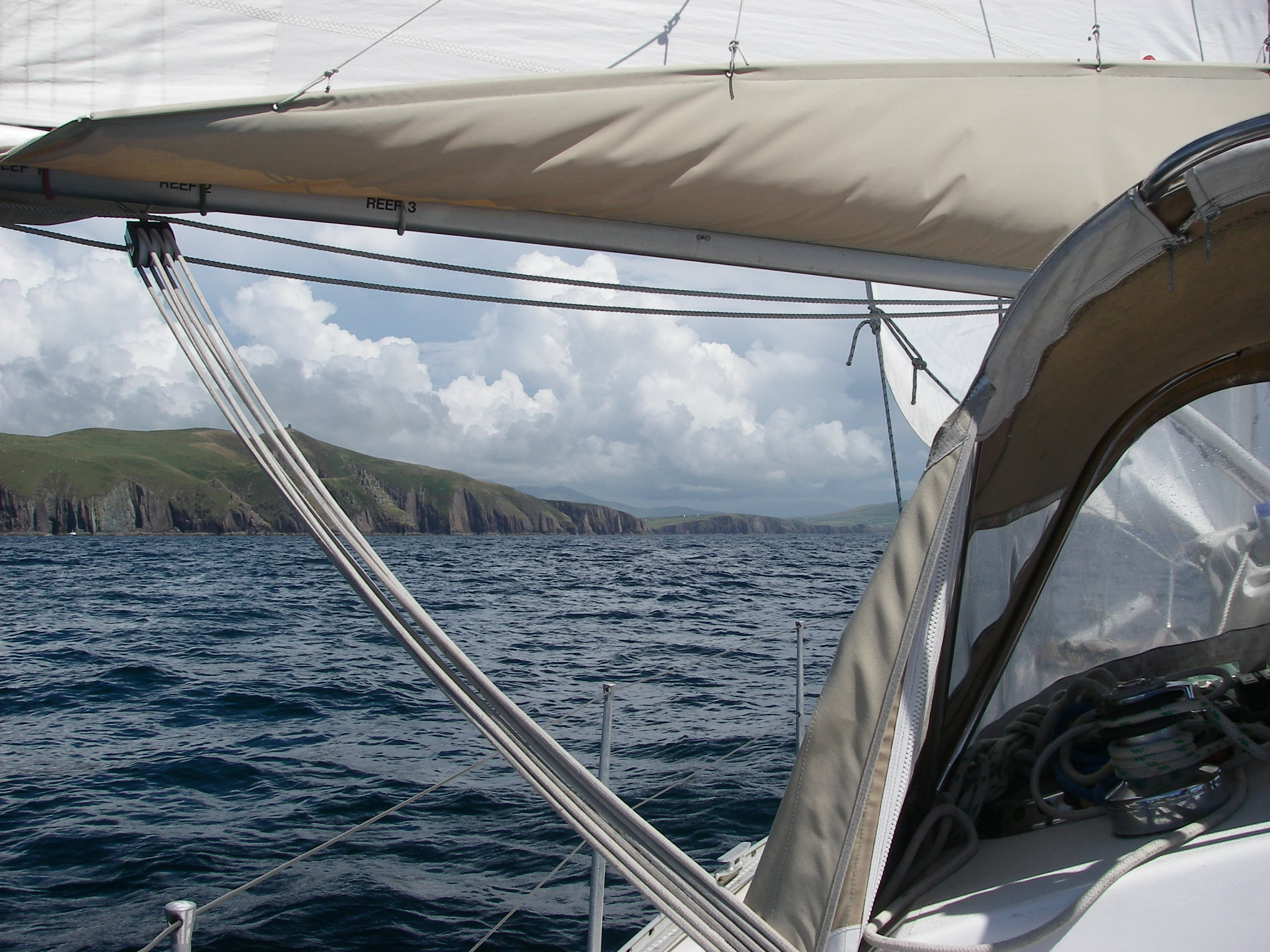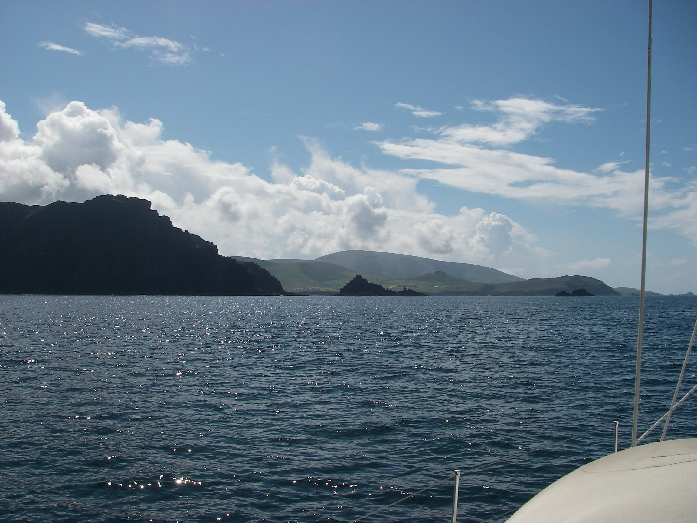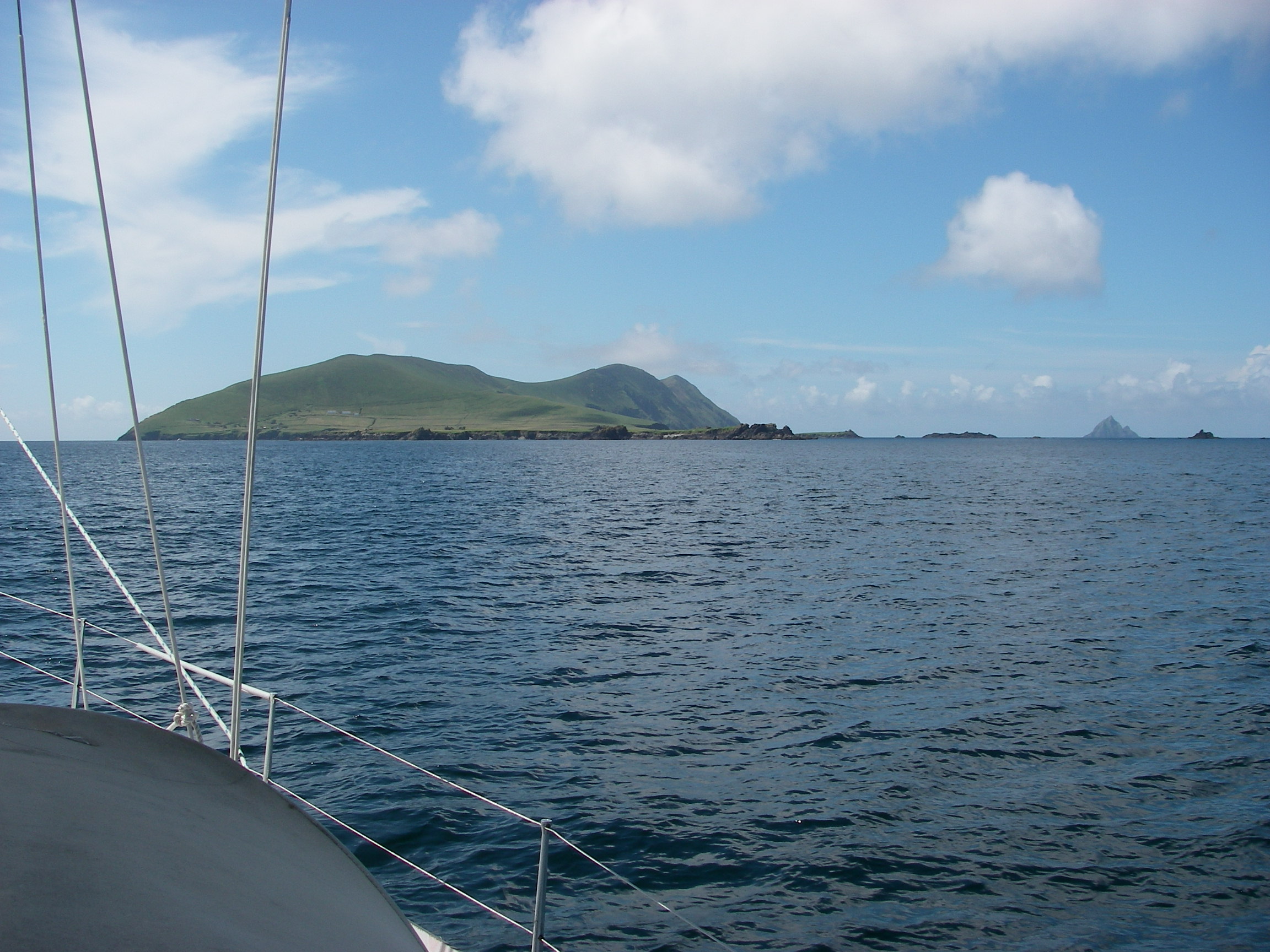 We passed inside the stunning Blasketts at noon, in quiet conditions. Excursion boats from Dingle had landed lots of people on Great Blasket, who we could see exploring the island, now uninhabited except for an artist who lives there part of the year. A former Irish Taoiseach, Charles Haughey, used to have a house on one of the even smaller islands.