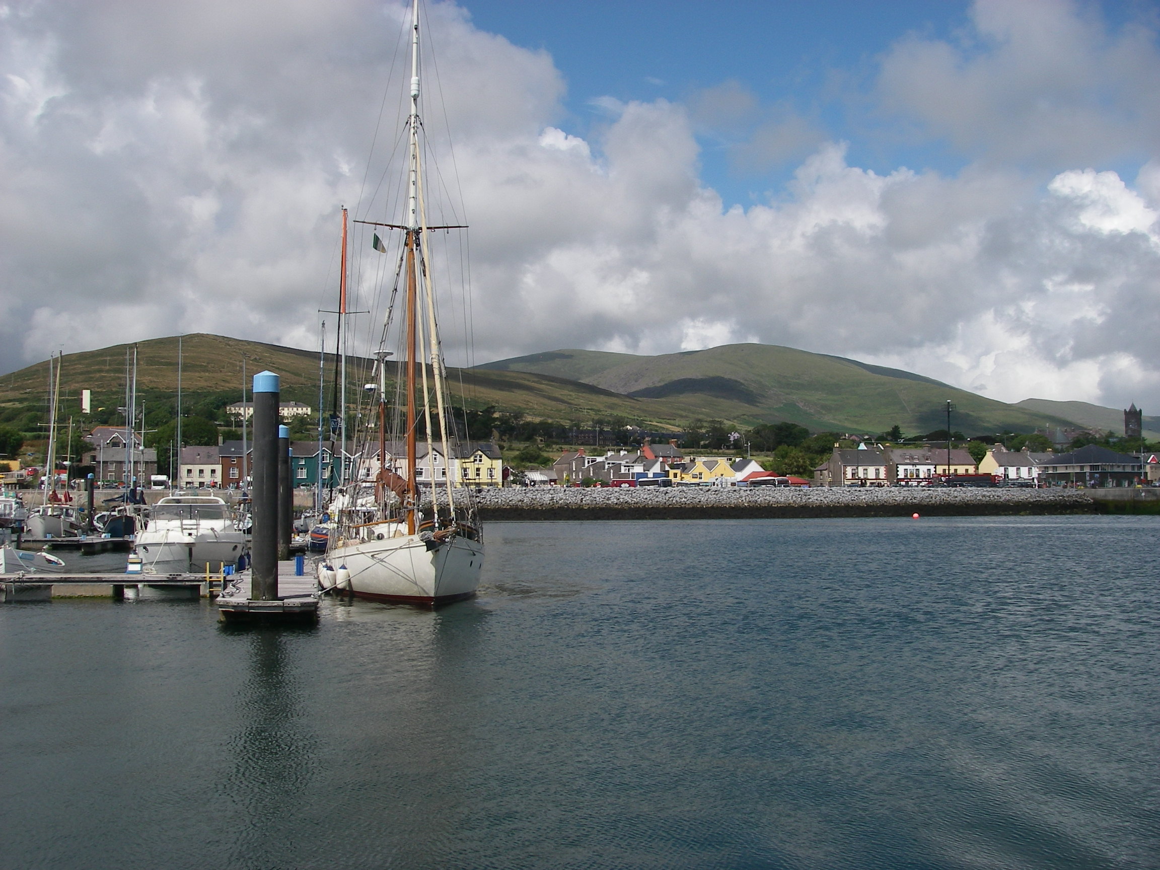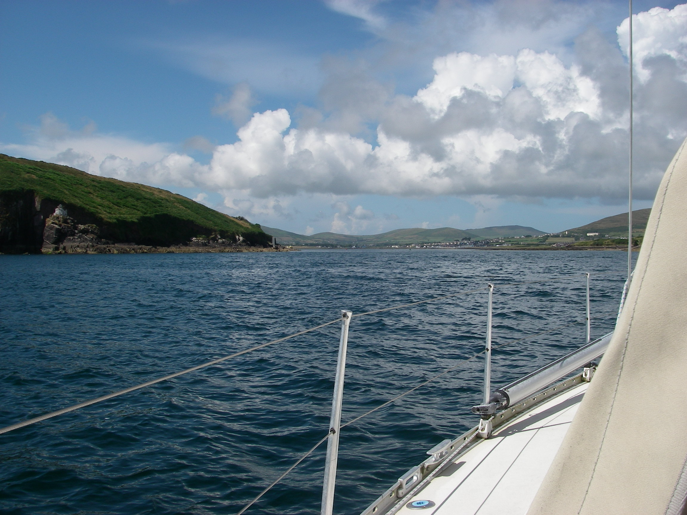 Into Dingle, which is am amazingly well hidden harbour with a narrow entrance that broadens out into a wide shallow lagoon that – coming from the west – can only be seen as you are about to enter. There is a narrow dredged channel, which it is important to keep to, because there is very little water outside it.