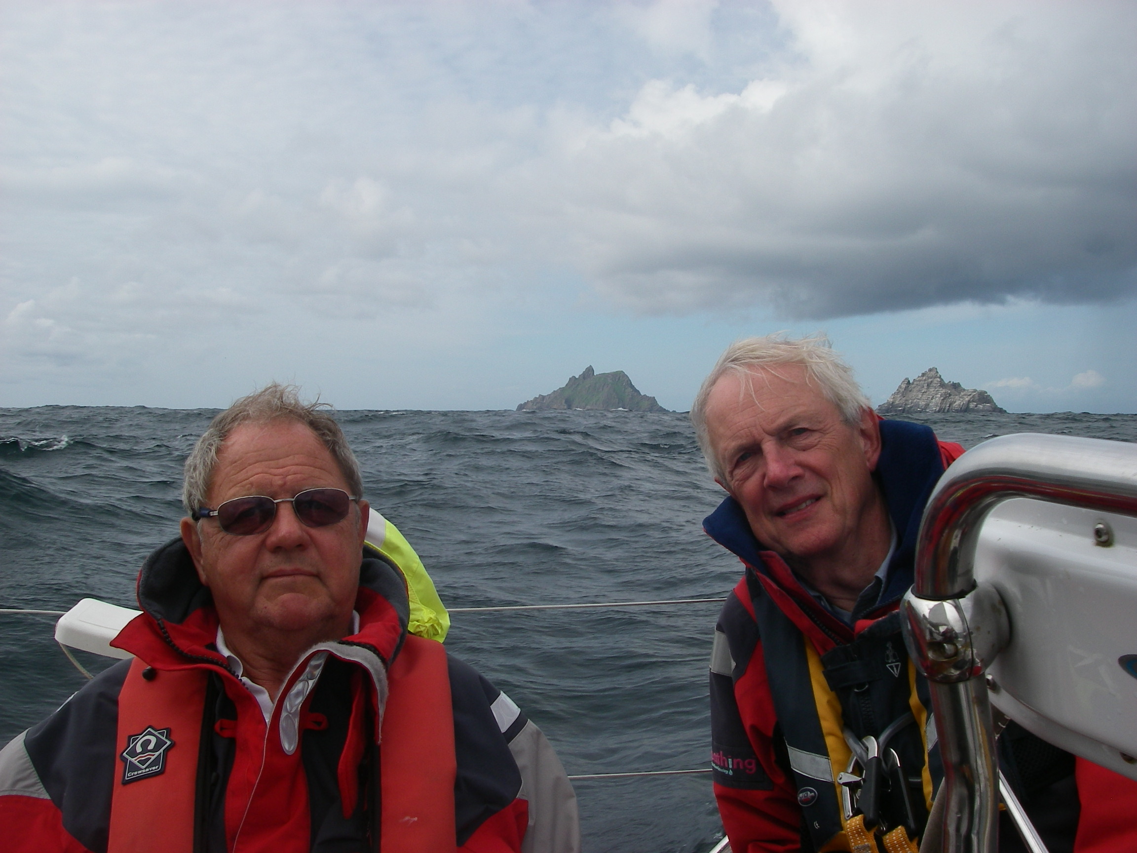 We sailed in sight of the Skelligs, the pinnacles of rock where monks lived as hermits one and a half millennia ago. The Skelligs are a UNESCO World Heritage Site, like Dun Aengus. It is very hard to believe that anyone could live on these steep sided islands, but their chapels and cells are still there, and so are the paths up to them. They are perched at 160metres and the summit is at 230 metres. It is not usually feasible to land from a yacht, but in good weather there are excursions from the mainland, for what sounds like a rather daunting outing.