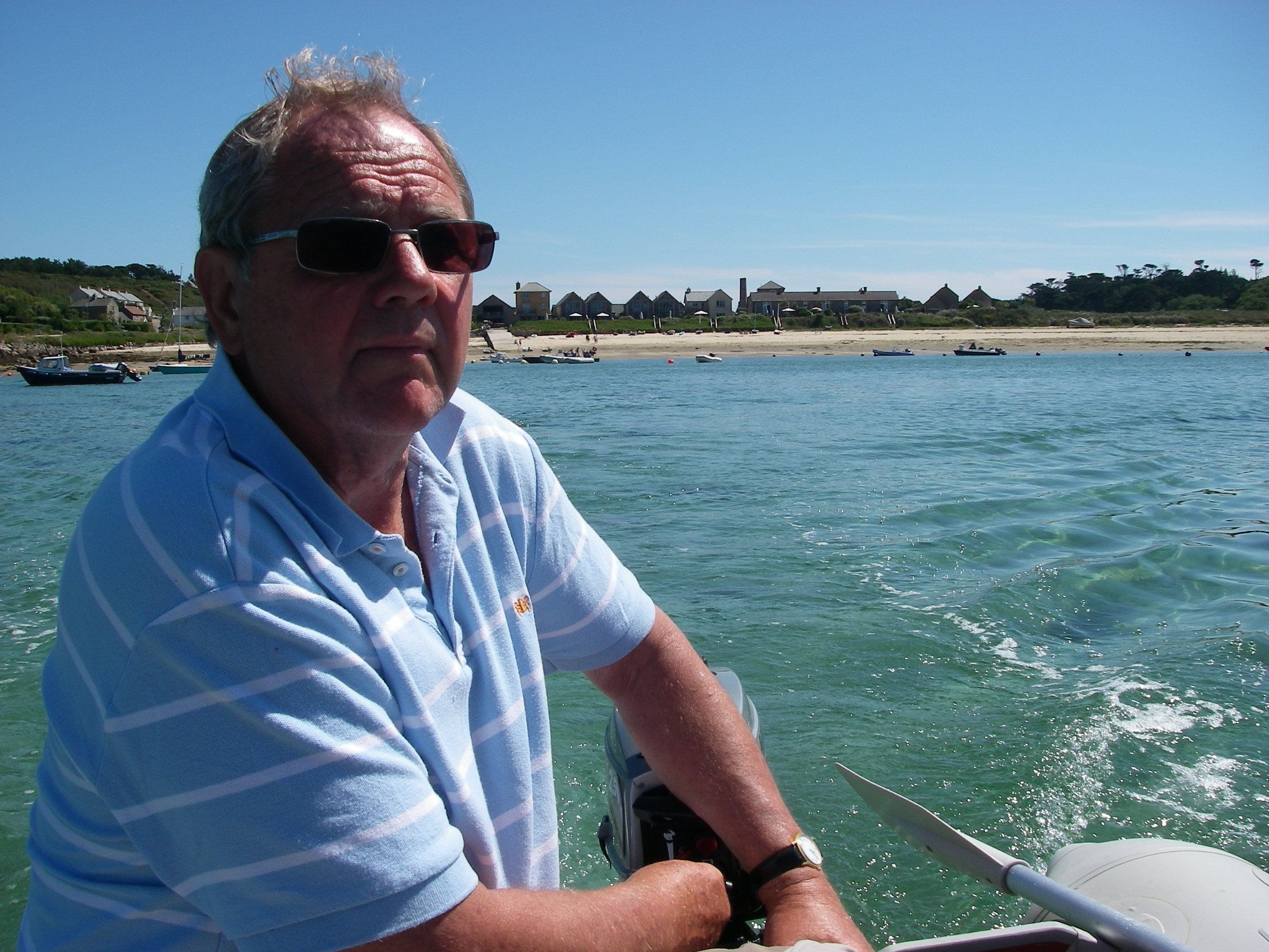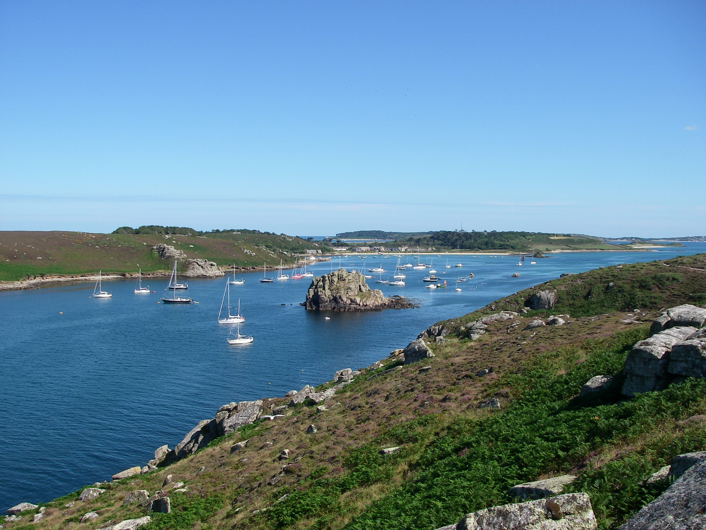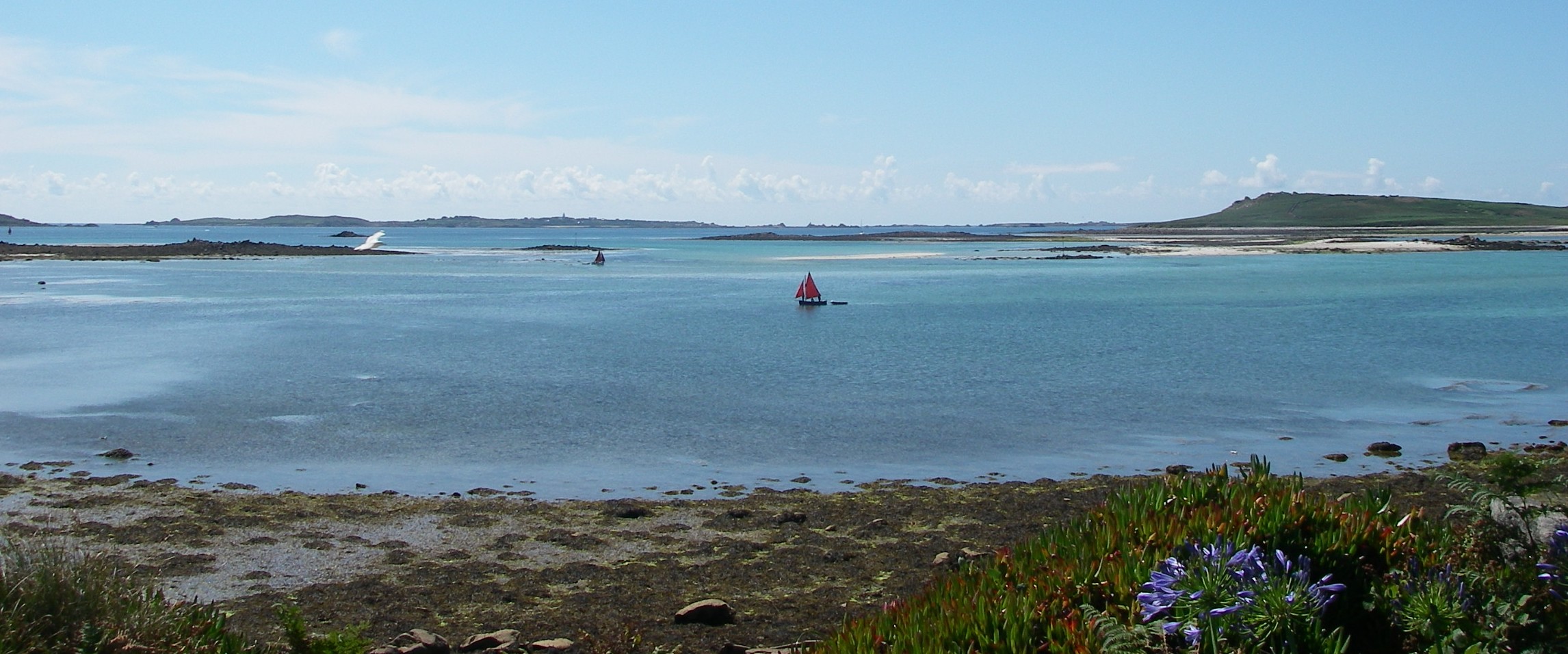 Motored over to Bryher in the dinghy for lunch, with a foot or two of water most of the way, because it was low spring tide.