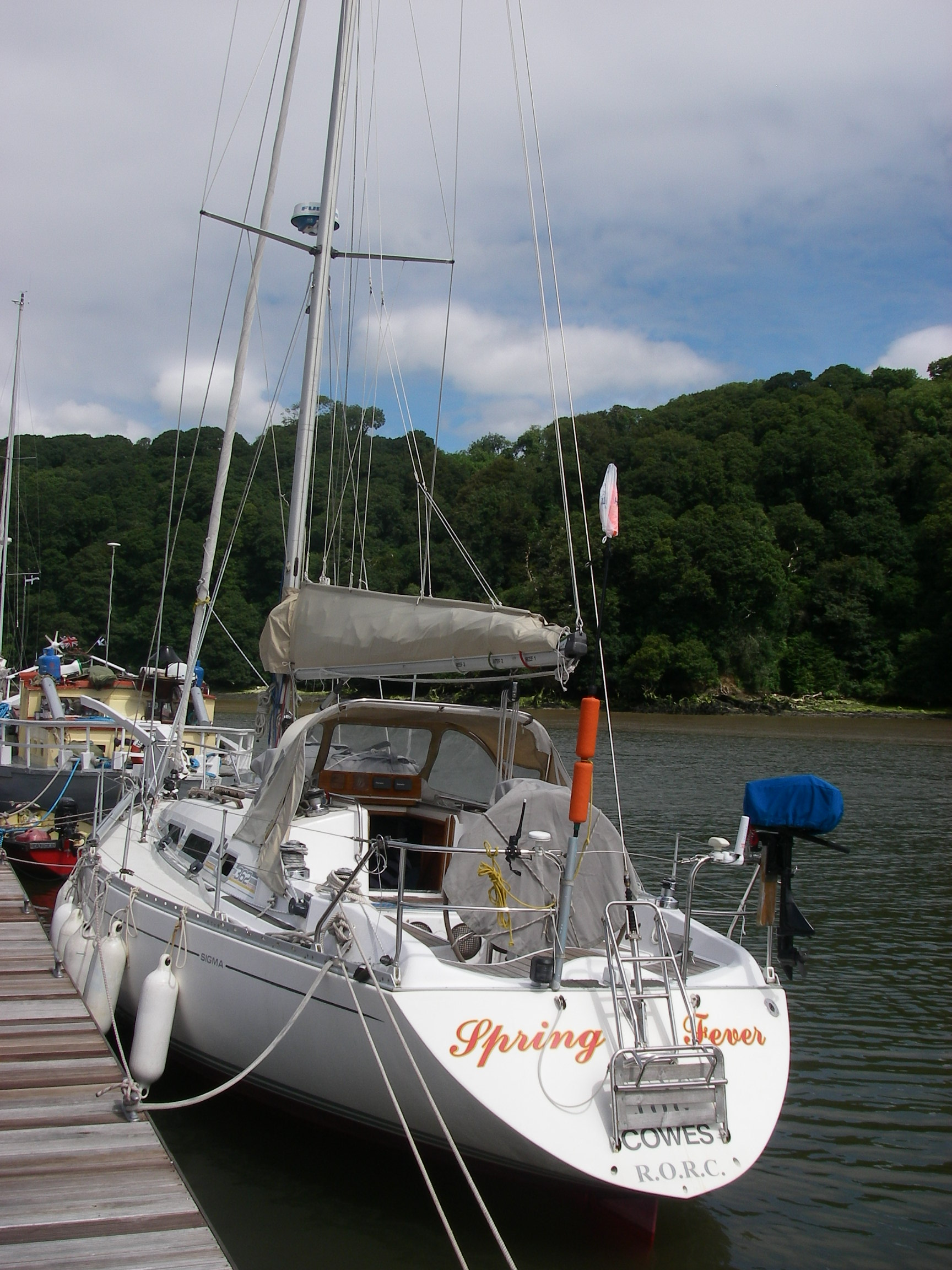 Last day of the cruise. Before leaving Falmouth, we refuelled the boat ready for next time, and motored up the Fal and Truro River to a pontoon mooring we had booked at Woodbury Point, near Malpas.