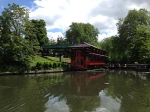 Then past Lord Snowden’s aviary in London Zoo and a sharp left turn by the floating Chinese restaurant.