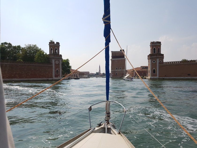 A great weekend, with overnight races to Novigrad in Croatia and back, a dinner in Novigrad, and the next day a vineyard tour, before the second evening start. The pre-race gathering of the fleet in Venice’s Arsenale docks (where the old galleys were built and based) was an unforgettable experience.