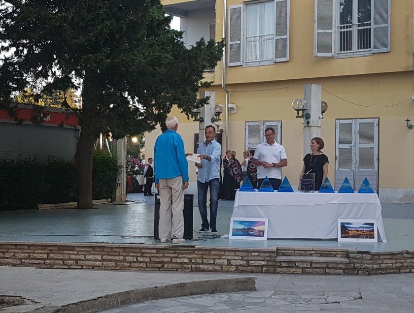 Here’s Martin in Novigrad being presented with one of the prizes for the first leg, in which Spiuma was third in class and also awarded the smallest boat prize.