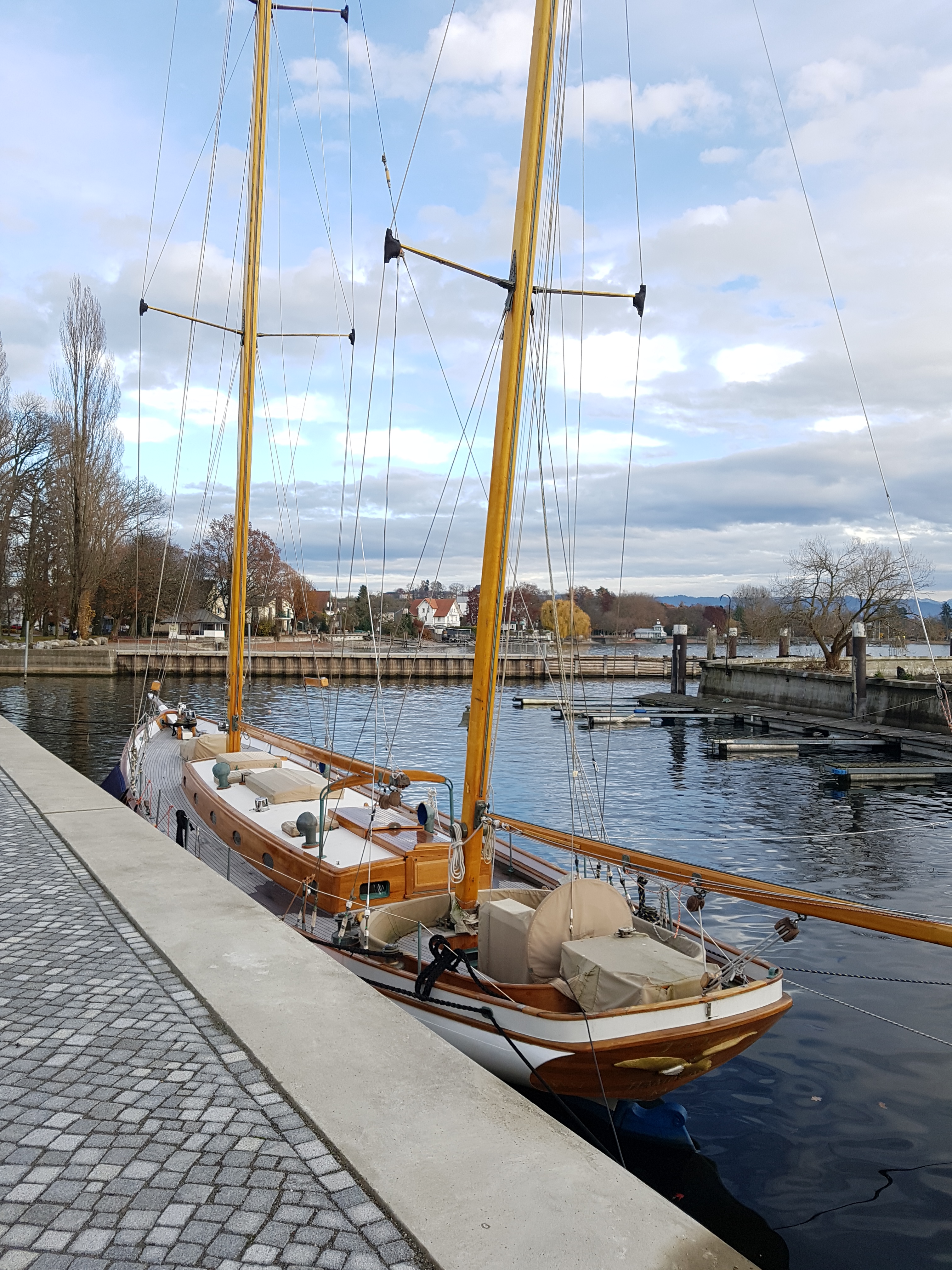 So how on earth did a yacht with those tall masts get to the 38 mile long Bodensee, where Germany, Austria and France meet round the shores? And what on earth would an ocean yacht be used for on a lake where it would take a morning to go from end to end? (A waste of a thoroughbred).