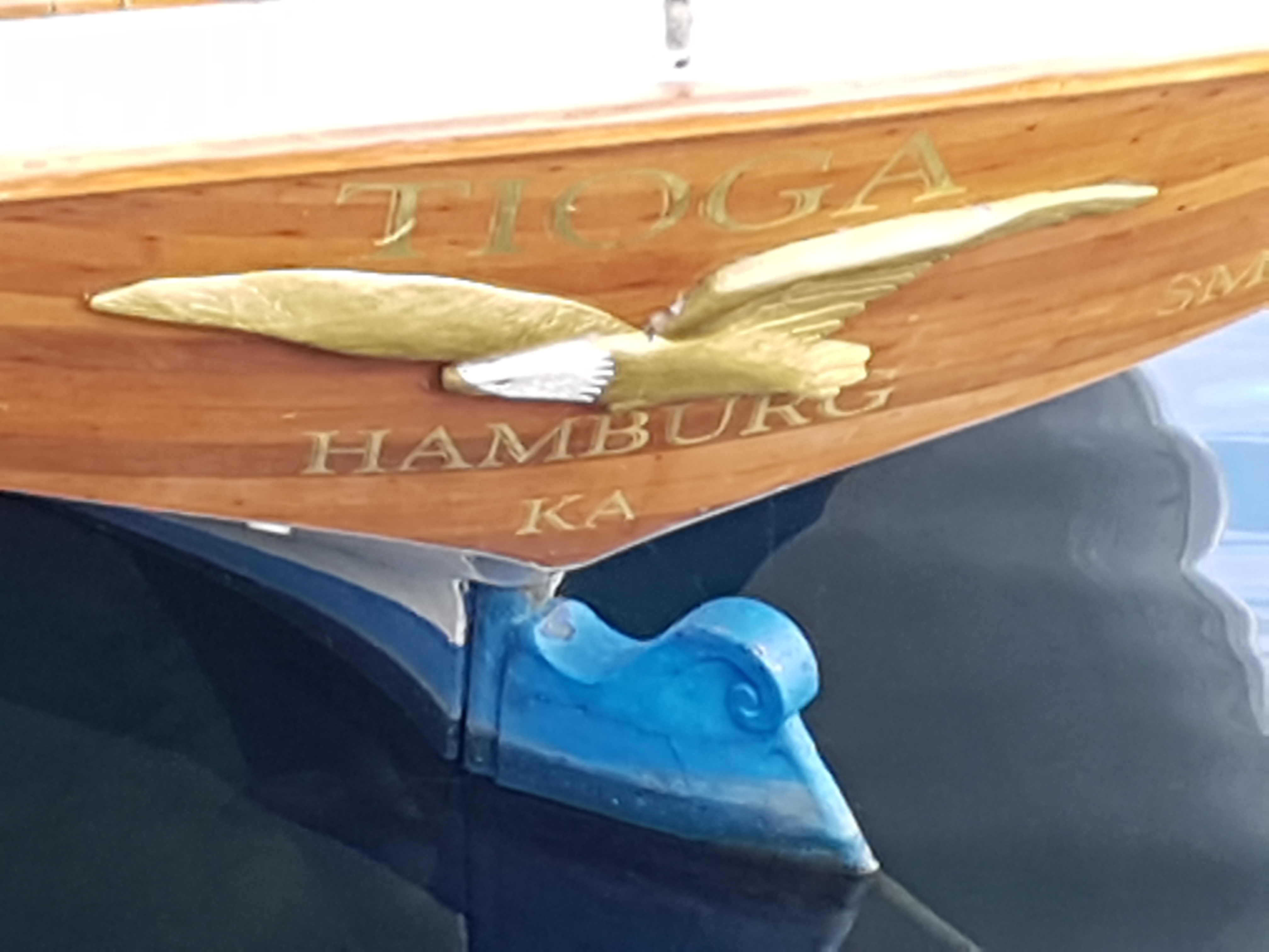 A double check then found a surprising fact: this magnificent yacht is actually yet another copy with the same name, Tioga. It was built in Radolfzell on the Bodensee recently, in 2013, and is for sale for €1.35mn, against a paltry €450,000 for the sea-going 1988 Tioga, which has been cruising the Baltic after crossing from the US.