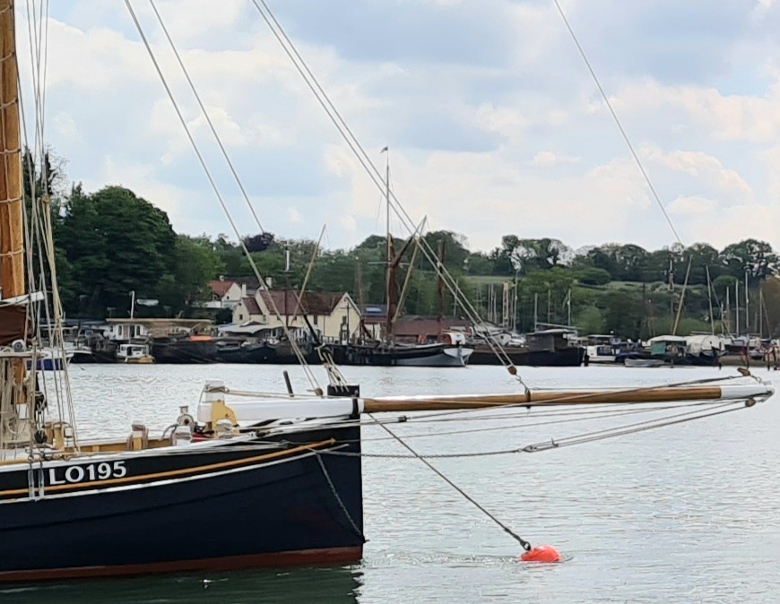 Once in the harbour we stuck close to the main ship channel because dredging has silted up much of the wide expanse between Felixstowe and Harwich. We then crossed into the Orwell at Shotley Spit and went up past Pin Mill to the buoy we have rented for a month from the MDL marina at Woolverstone.