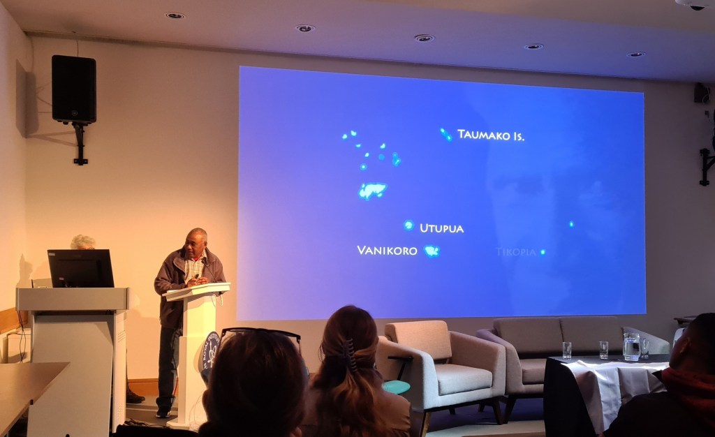 In Greenwich we heard from practising Pacific navigators including Captain Luke Vaikawi, director of the Taumako project, Mario Jacob Benito, who is trying to revive traditional boatbuilding and navigation in the Northern Marianas, and Sanakoli John from Pasana in the Solomons, who has navigated a traditional canoe 6300 km round Papua New Guinea, and who is also teaching traditional methods. Another Solomon Islander talked about the spiritual background of the navigators’ island world.