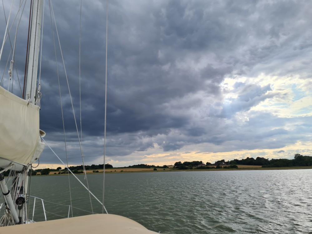 A big advantage, apart from it being a pleasant and relatively uncrowded cruising ground, is that it’s reasonably cheap and easy to leave the boat there and go back for it later. That seemed a good plan given the likelihood that the current string of lows will keep coming in from the Atlantic for the next few weeks (forced our way by the heat dome over the Mediterranean). A summer mooring on the east coast for a month can be rented for the cost of a week in most places on the south coast. So Suffolk it was.