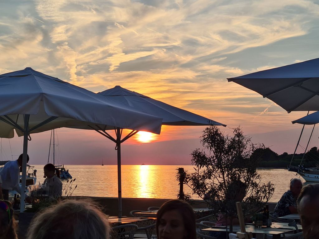 We were a crew of three – skipper Martin, myself, and son Will, who has been living with his family in Venice. Will’s Italian family – Faye, daughter Indigo, grandmother Lucia – were on holiday in Istria less than an hour’s drive down the coast, and they joined us for dinner. The next day we lunched at a restaurant among the pines, swam in the warm water of the bay and played mini-golf, while Martin went on a vineyard tour to buy a case of delicious Istrian white wine, a malvasia with a hint of saltiness from vines growing near the shore.