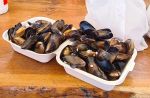 The stall sells perfectly cooked local mussels to eat standing up or on benches on the quayside. There were scallops, oysters, dressed crabs, langoustines, clams, lobsters, whelks, salmon poached and smoked – all local and cooked in the shed behind or sold raw.
