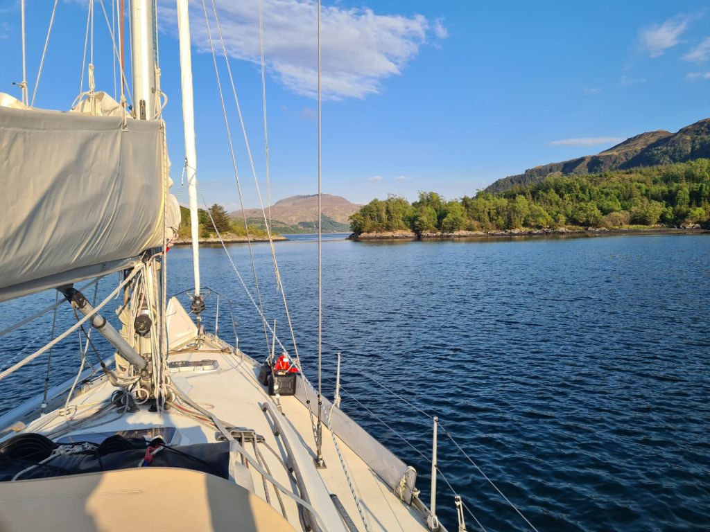 After fitting out for three days in Kerrera Marina, we spent the first night in Loch Droma Buidhe, near the entrance to Loch Sunart.