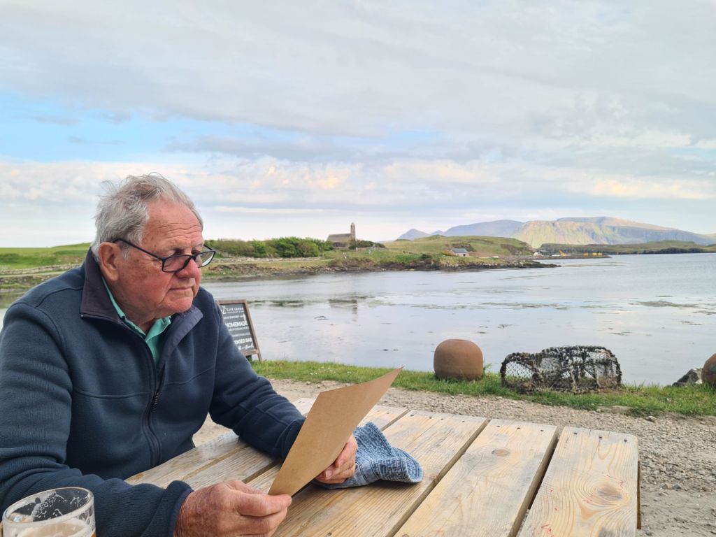 Next stop was the lovely little island of Canna in the Sea of the Hebrides, timed for the Canna Cafe. Last year we arrived on a Tuesday and found that was closing day. (This year, Tuesday’s a pizza night). There’s a delicious and inventive menu, featuring seaweeds in all sorts of combinations with fish, vegetables and meat. The chef’s Canna Cookbook is a big seller which recently we saw displayed prominently in Waterstones, but we took home a copy from the café and plan to try out its advice on cooking seaweeds.