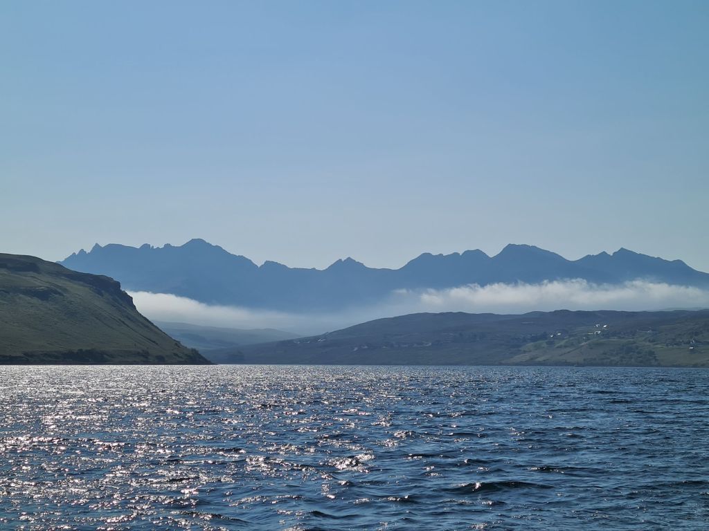 We spent the night in Loch Harport, after beating 20 miles up the coast in an unexpected Force 6, which was dropping off the Cuillins on an evening that was probably much calmer everywhere else. Loch Harport was serene as soon as we entered. It is home to the Talisker distillery.