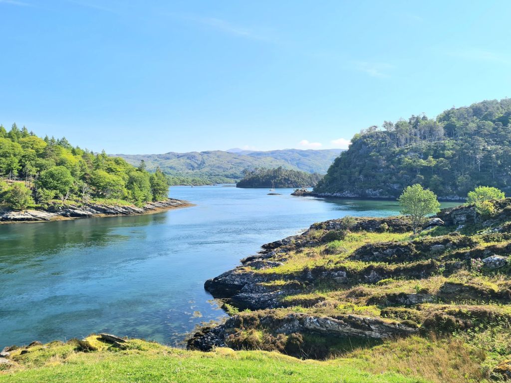 The West of Scotland had the best weather in the UK in May, for the whole 18 days we were there. Bright sunshine, blue sea and mainly light north and east winds were ideal for checking out new anchorages and visiting old favourites, several of which we’d have avoided in any other kind of weather.
