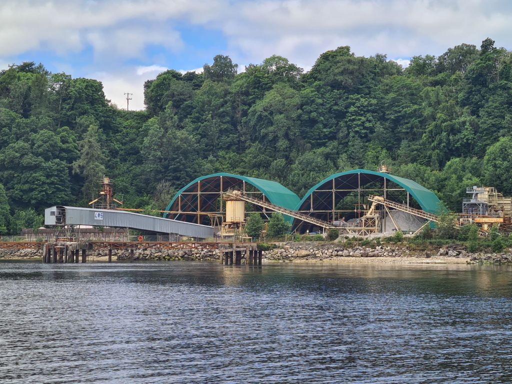 Loch Aline is pretty, sheltered and has a thriving village near a quartz sand mine, which is used for making high quality glass. It’s said to be the only sand from an underground mine in Europe. Quartz is a valuable material and the tonnages aren’t large, so the facilities aren’t intrusive.