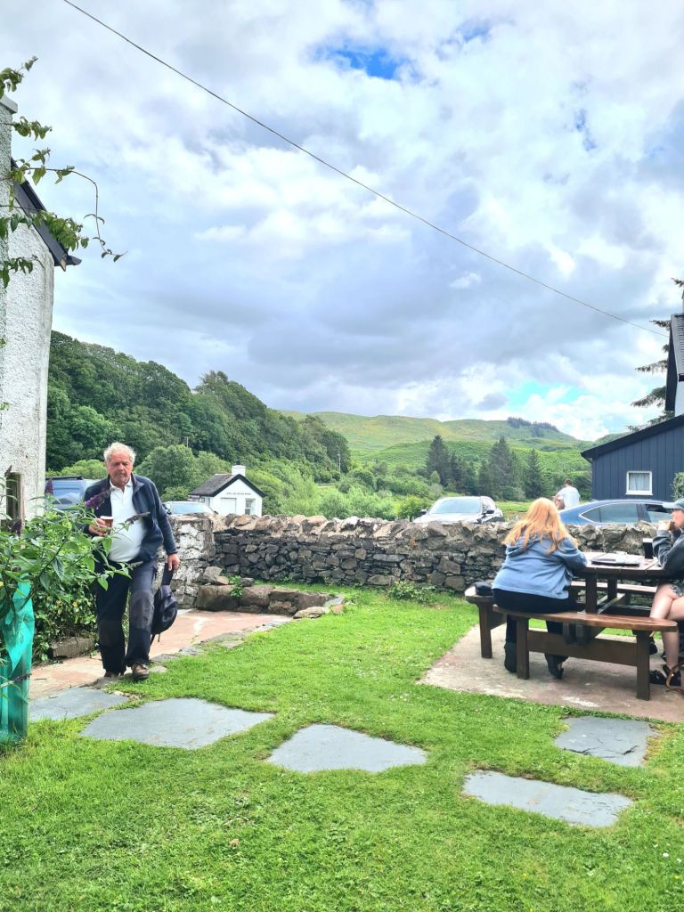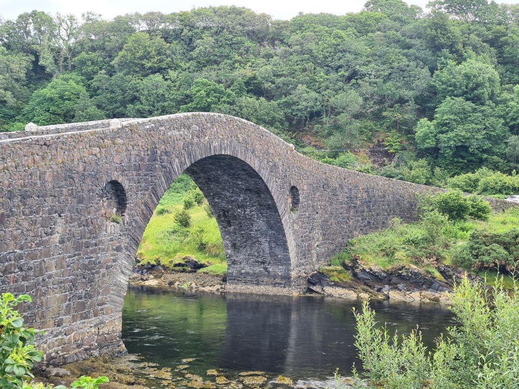 It is also one of the most popular anchorages, not least because of the lovely half mile walk over a low hill to Tigh an Truish, a pub and restaurant next to the Bridge Over the Atlantic, the old stone bridge connecting the island of Seil with the mainland. We found what we thought was the last space to anchor, until 4 more boats brought the total to a dozen.