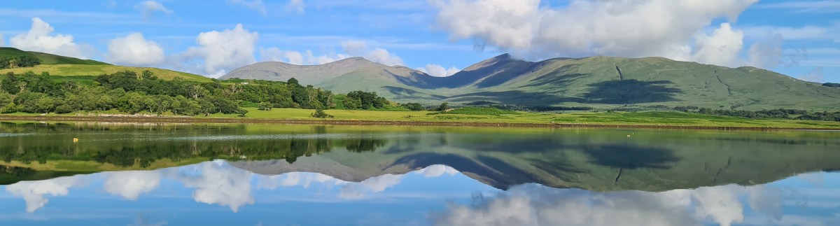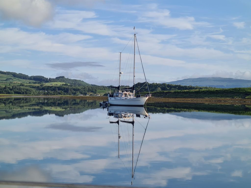 When the rain cleared and the wind eased for a few hours on Sunday we had a sunny morning sail 15 miles down the Sound of Mull to Loch Aline, which is pretty and sheltered.