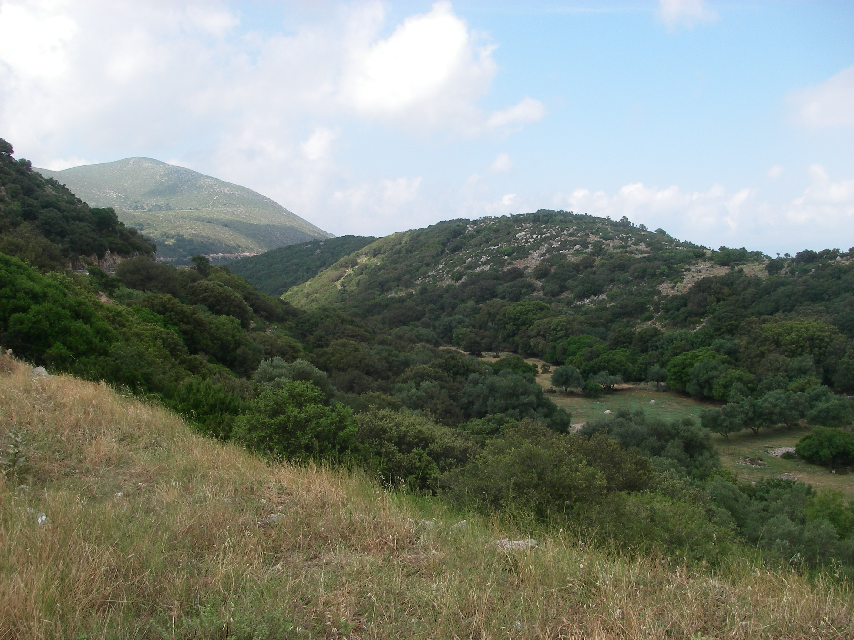 A narrow channel once separating Paliki from Cephalonia is now buried under these low hills, it is claimed.