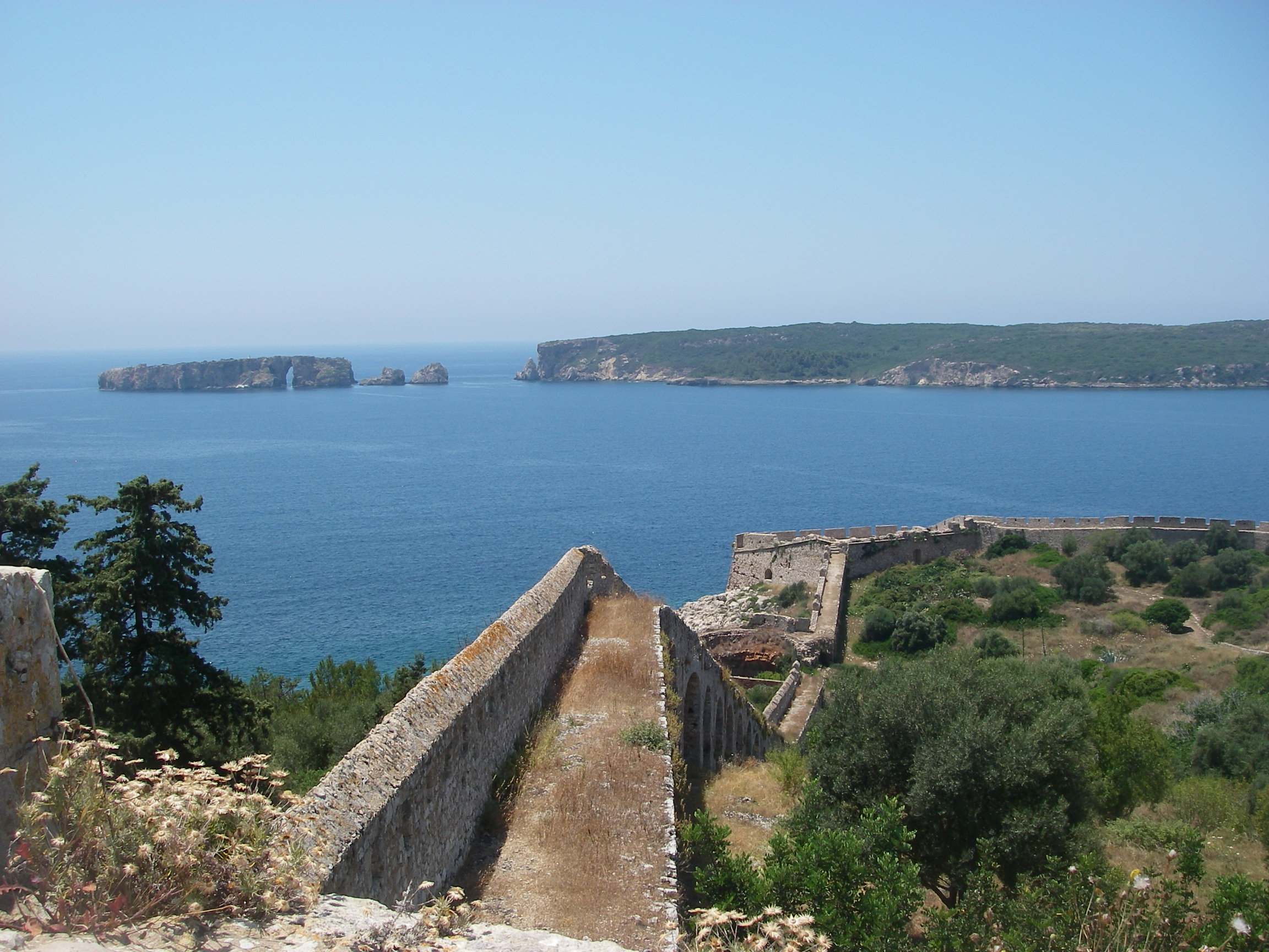 Site of the naval battle at the entrance to Navarino Bay, seen from the Otttoman fort at Pylos.