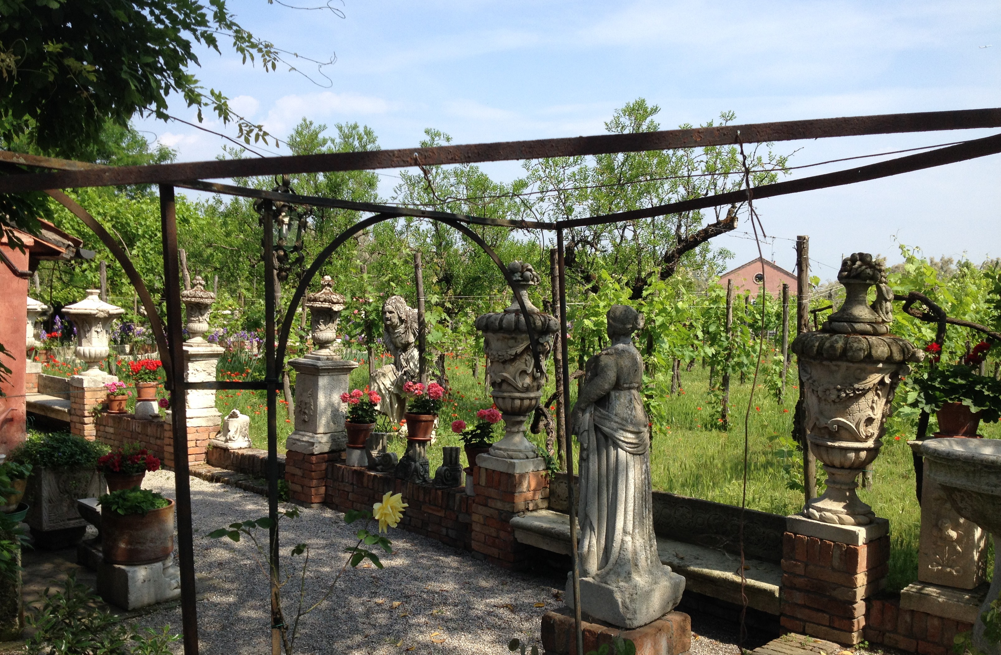 After exploring Torcello, we headed for the multi-coloured tourist island of Burano, which is as crowded in the day time as Venice, but which empties at night like Torcello. Locaboat has its own moorings on the neighbouring island of Mazzorbo, which is connected to Burano by a bridge. (The companys’s briefing document instructs us to tell any other boat found there to leave, singling out its competitor Le Boat by name, and helpfully adds a phone number for the police). There are many restaurants on Burano, though none seemed to stay open after 8 in the evening. Mazzorbo has one restaurant, in a walled kitchen garden open to strollers. It is so popular it has to be booked two weeks ahead.