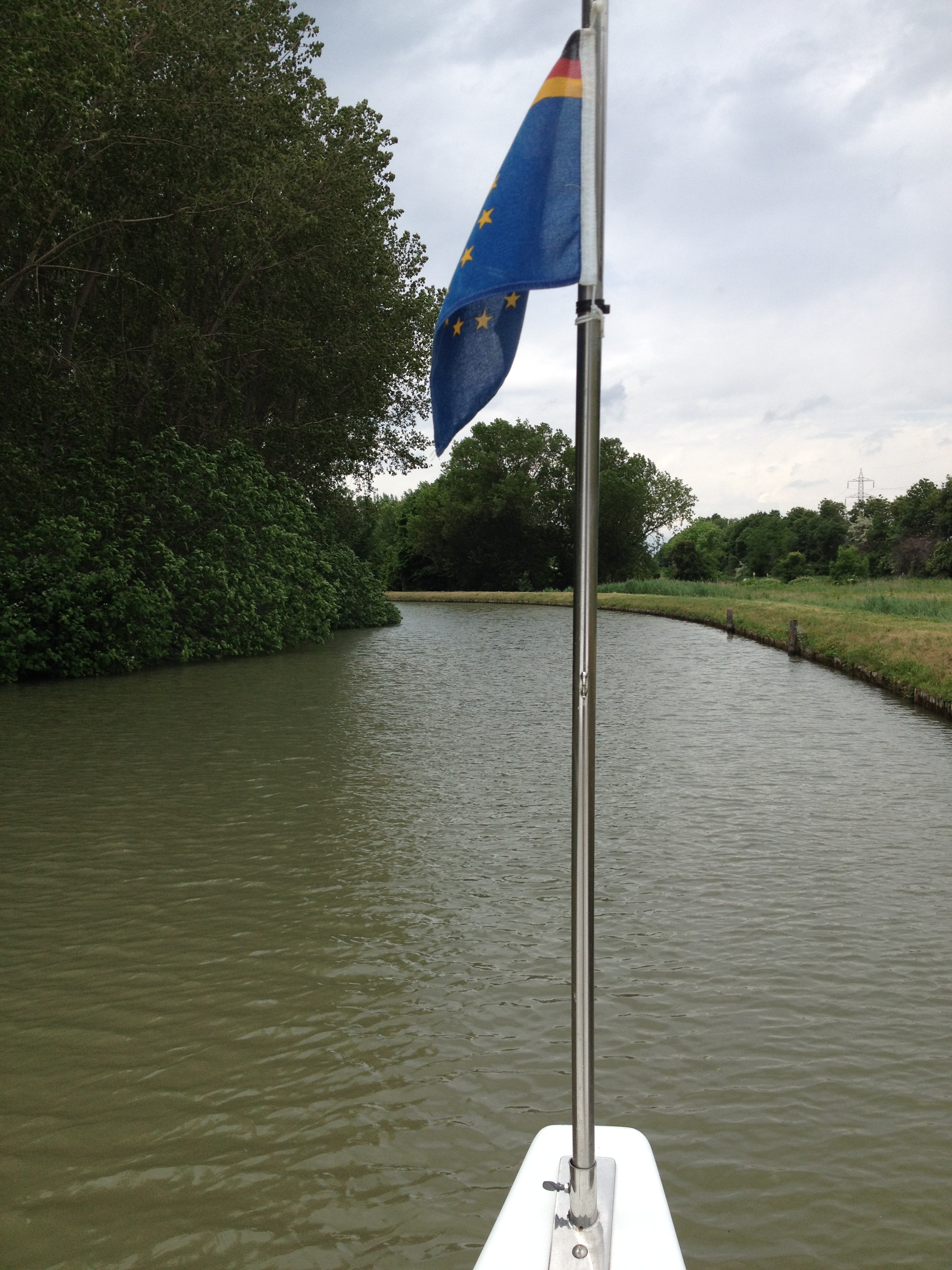 We were a crew of seven, occupying four double cabins on Caorle, a 15 metre barge with a Dutch look about it, owned by Locaboat, which has a network of inland waterways bases in Europe. The boat is well fitted out, with a shower and lavatory in each cabin. We booked through Blue Water Holidays of Skipton.