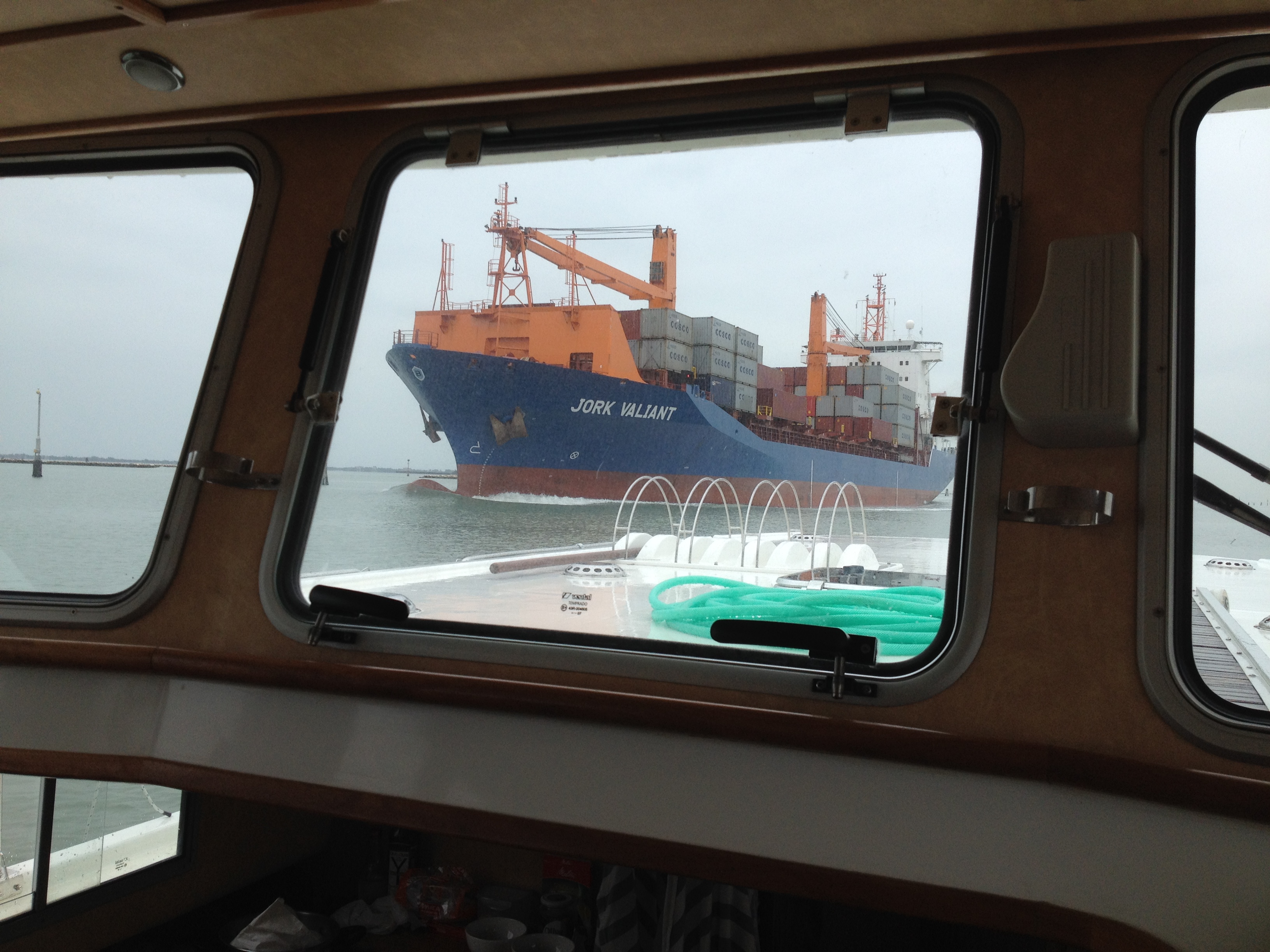 We stayed the night on a mooring at Malcontenta, and the next day headed back to Chioggia down the busy main shipping canal which leads to the Malomocco entrance to the lagoon, the central waterway.