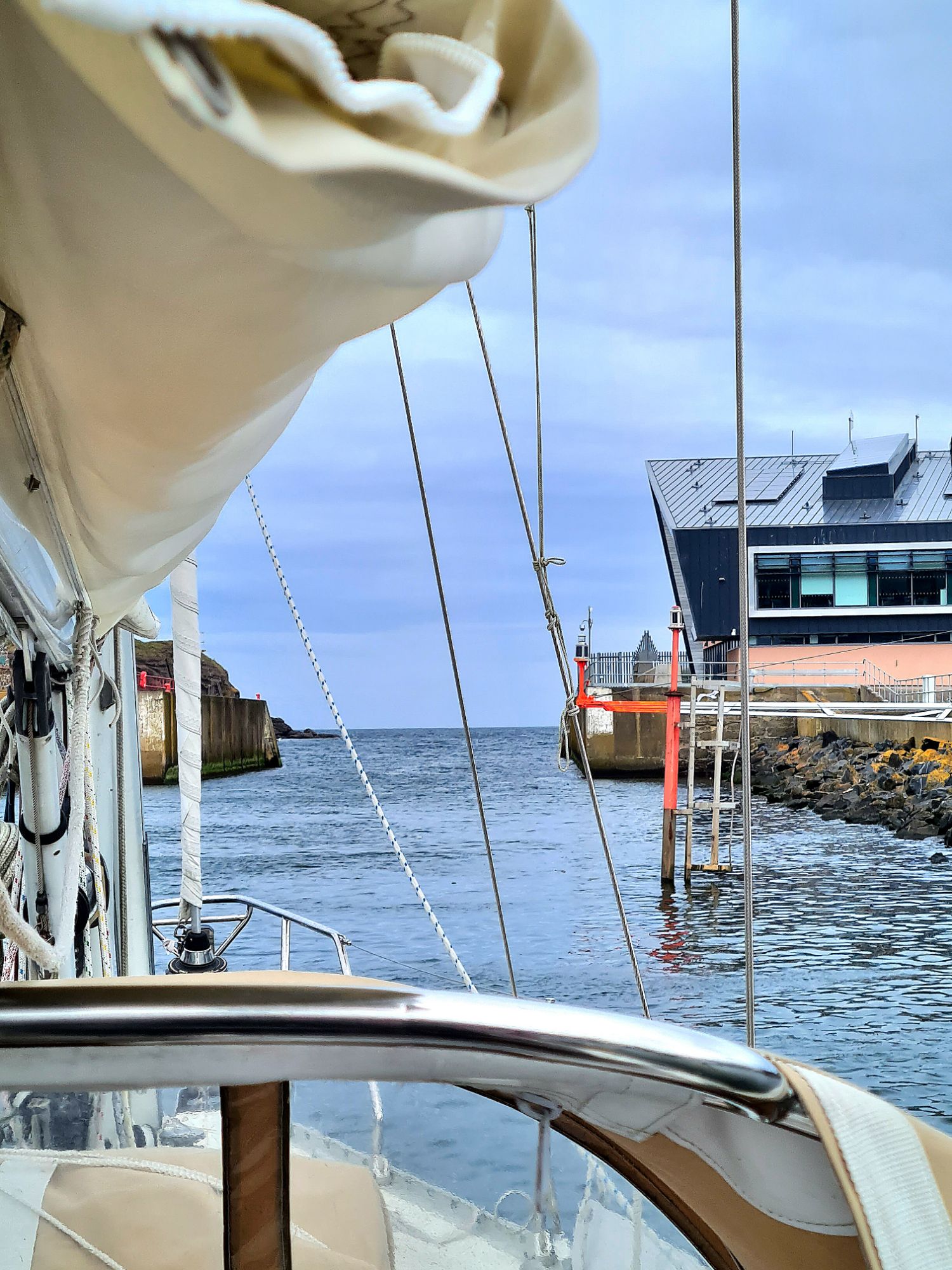 Our passage was finely timed: Arbroath has a gate that opens either side of high tide, and because it was neaps it was for less than an hour that evening. We had got it just right.