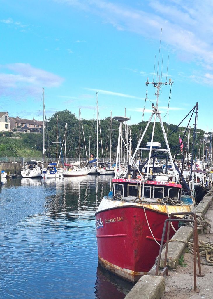 We went straight on to Scotland and into the first port across the border, Eyemouth. This has an entrance close to a beach which can’t be seen until the boat is almost upon it – nerve wracking for the first time but this was our third visit.
