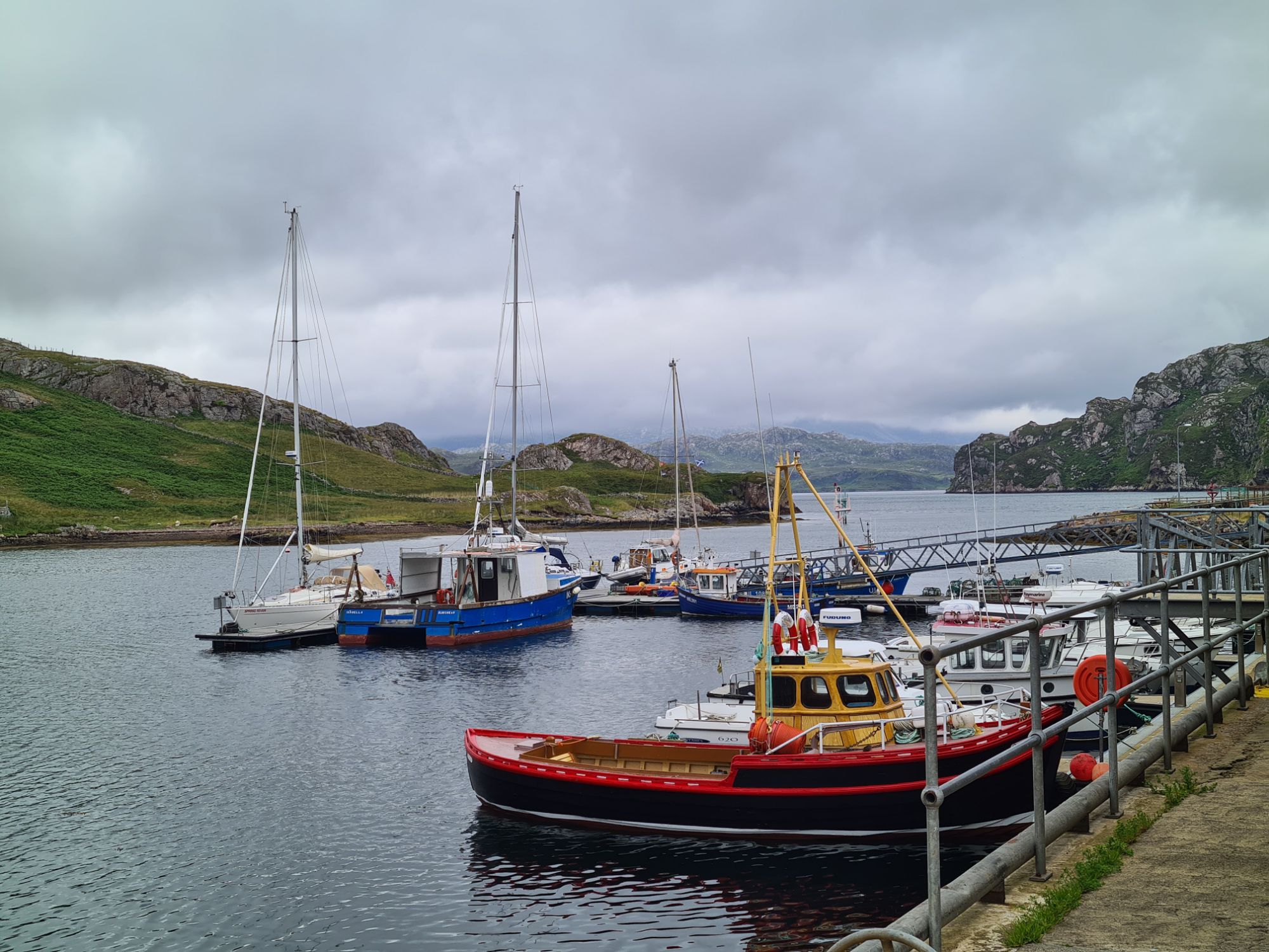 We arrived in Lochinver after a pleasant sail past the Handa Island bird reserve and the looming cliffs of Stoer Head.
