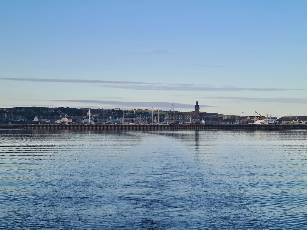 We emerged from there into a wide but sheltered Firth overlooked by the main town of the islands, Kirkwall, where we moored on a pontoon at the marina.