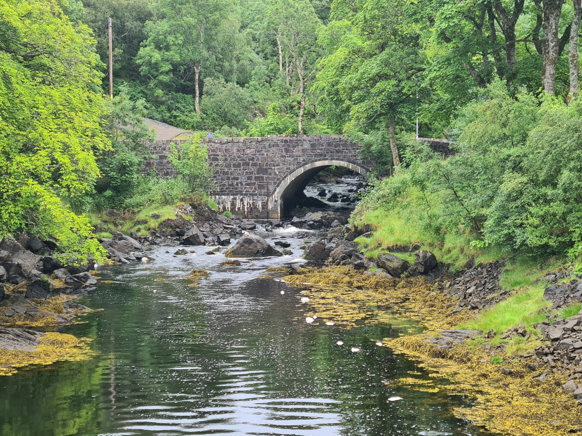 We turned east under the Skye Bridge, with 10 metres clearance above the mast, and spent the night moored at a pontoon in Kyle of Lochalsh. Supper was in a bar to watch the final of the European Cup.