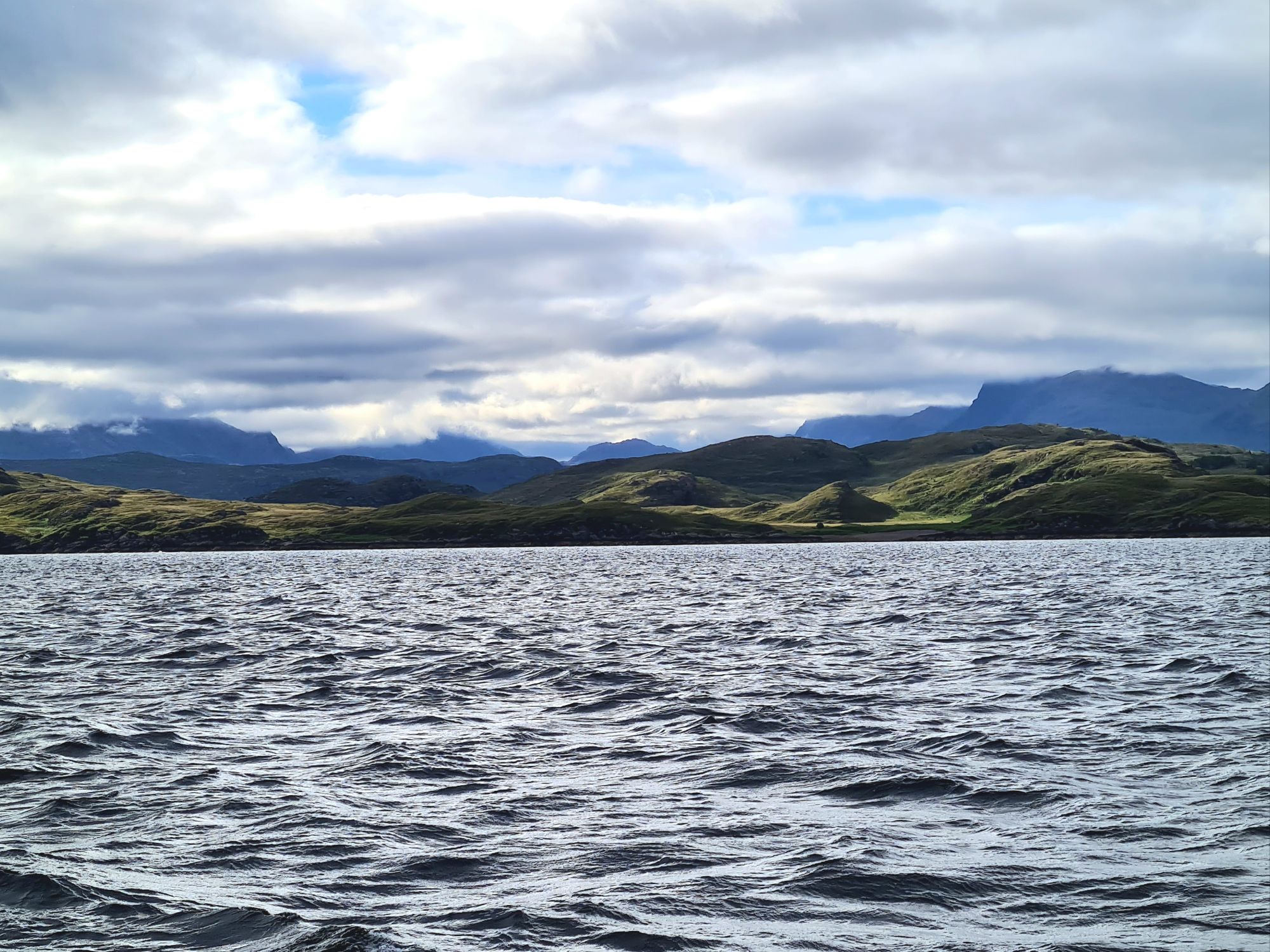 After a gloomy, cloudy start from Loch Ewe, the sun came out as we turned past the headland of Rubha Reidh and headed south.