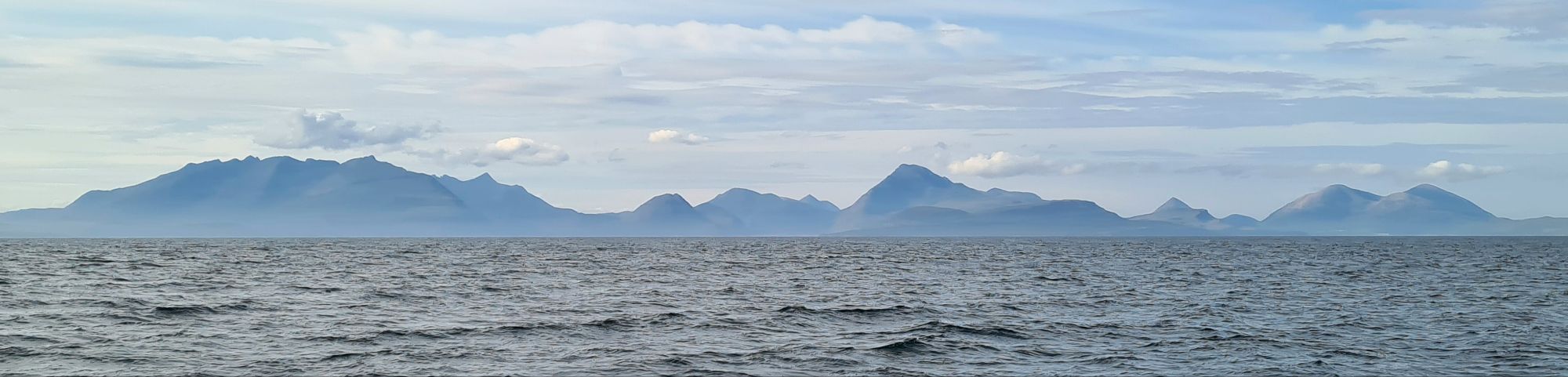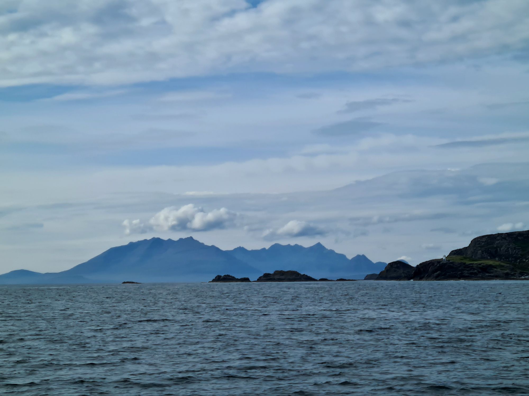 We sat back and enjoyed a fast run down the Inner Sound on a beautiful day. The mountains of Skye were off to starboard the whole time, looming above the smaller, lower islands of Rona and Raasay that flank its eastern shore.