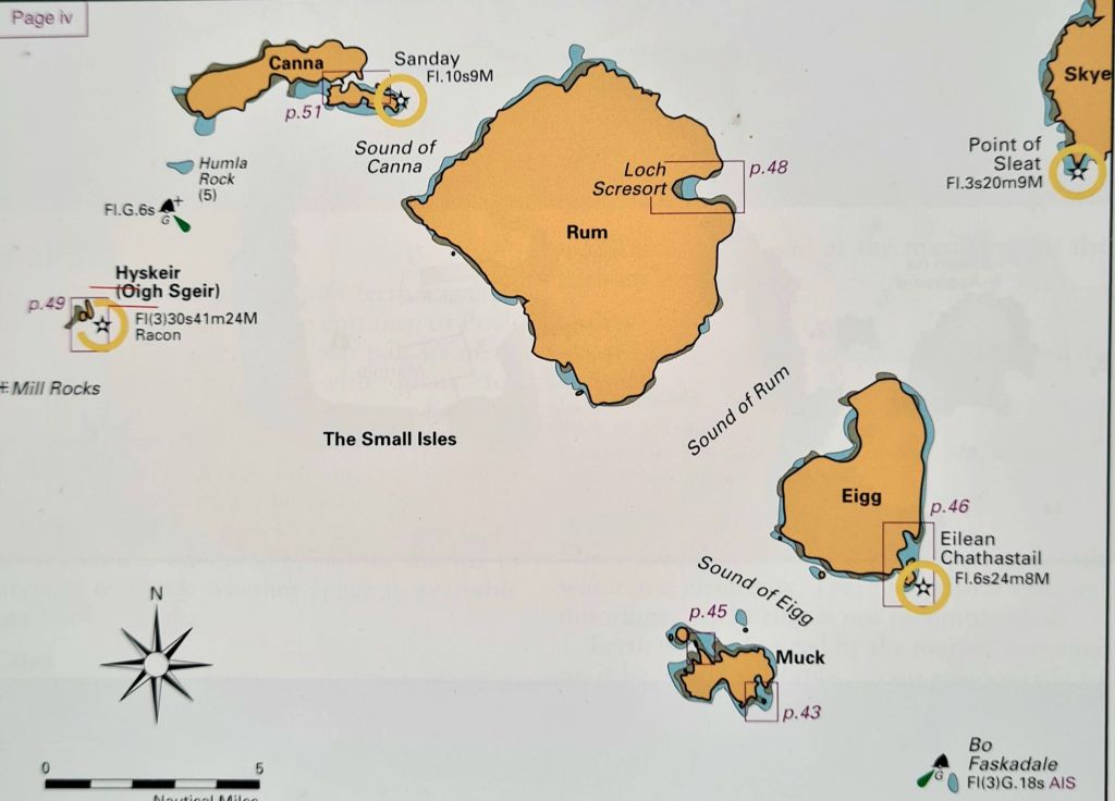 On our other side we passed the entrances to Gareloch and Loch Torridon on the mainland, dodged east of the small Crowlin Islands, accompanied for a while by a dozen leaping porpoises, and then across the wide entrance to Loch Carron.