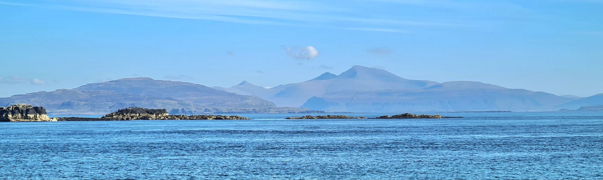 We left on a bright, sunny and unexpectedly warm morning, sailing down Loch Alsh to Kyke Rhea, the fiercely tidal narrows that separate Skye from the mainland.