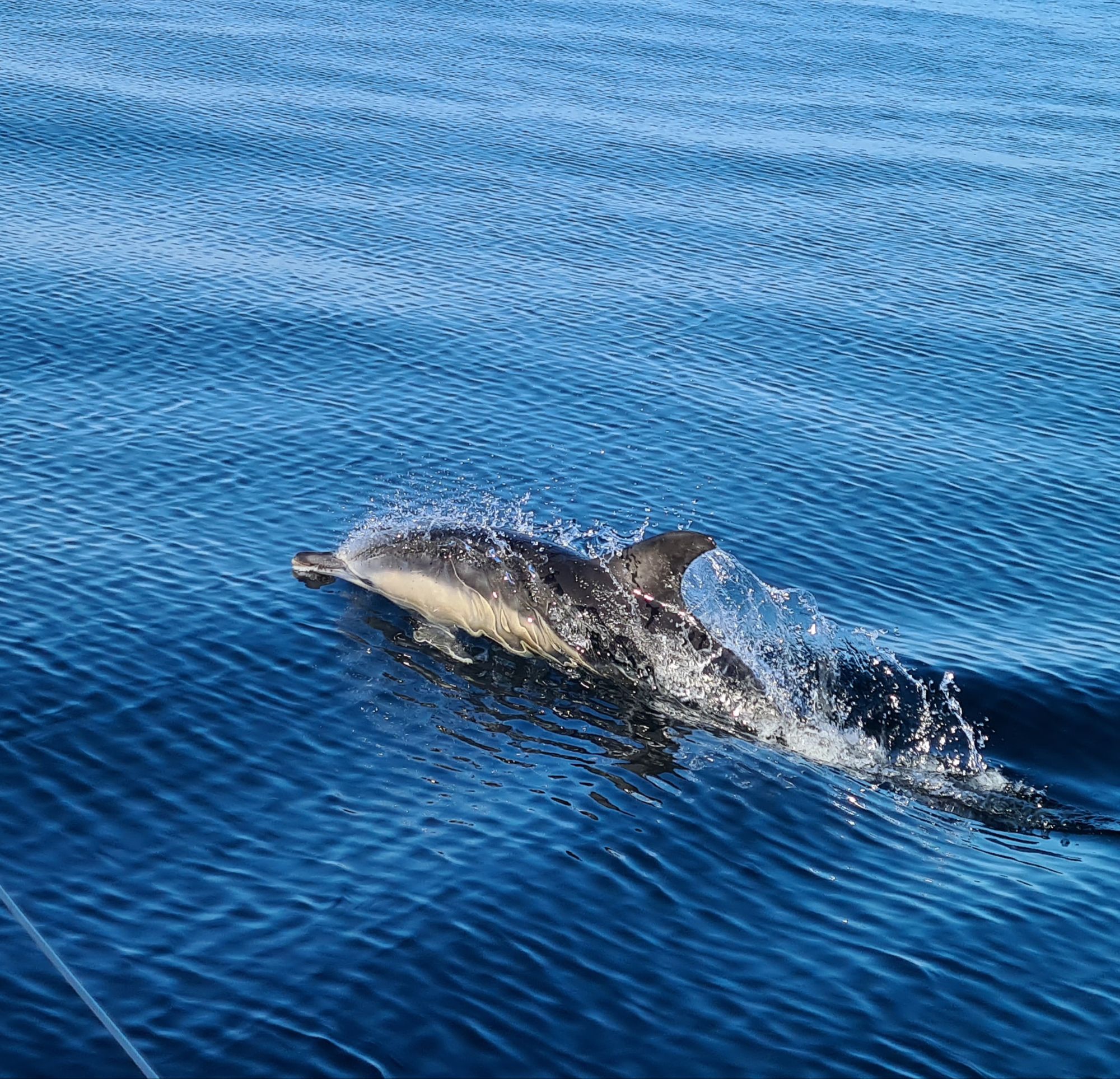 The day started windless and sunny, with tidal turbulence only visible on the glassy surface, often grabbing the boat sideways so we had to correct the course continually.