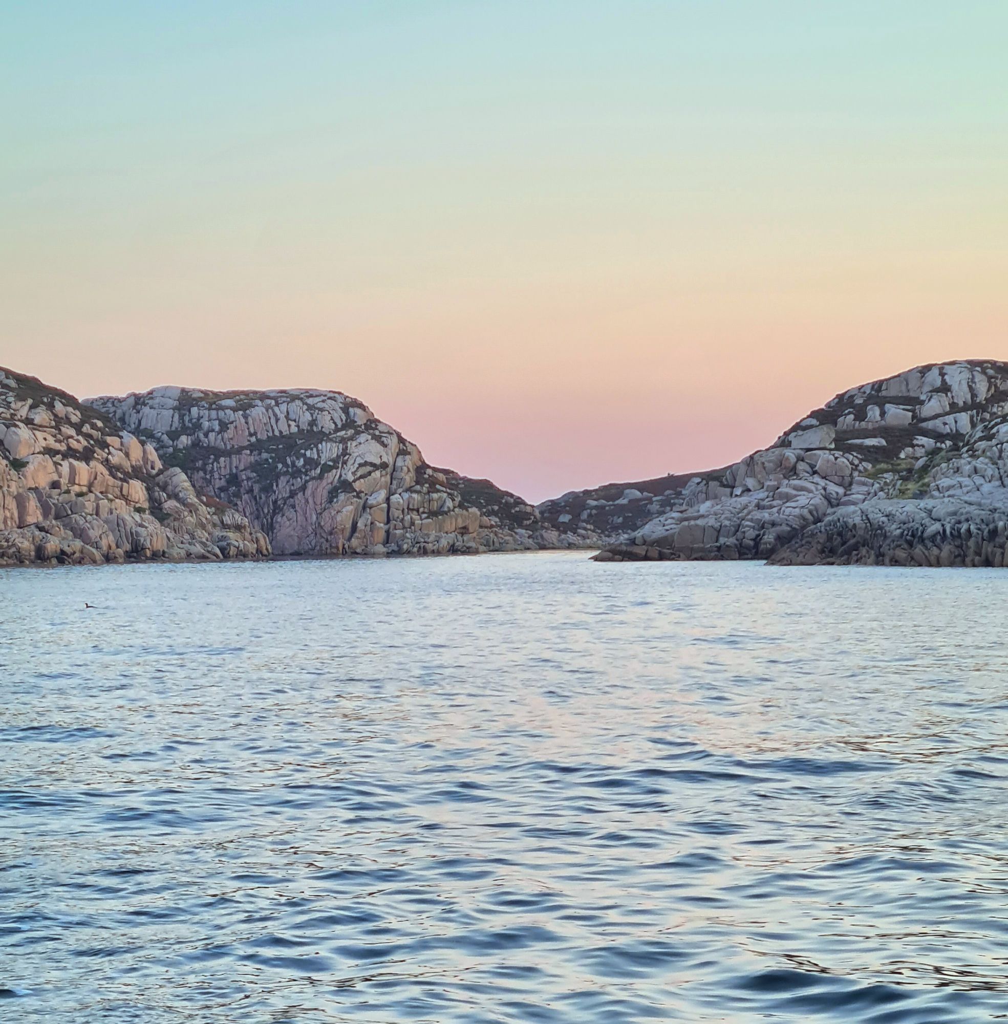 During the short midsummer night, the sea was lit by a full moon, with hundreds of red and white lights around us from wind farms and gas rigs. A faint glimmer from the sun stayed on the horizon all night, gradually shifting from north-west where it set to north-east where it would reappear.
